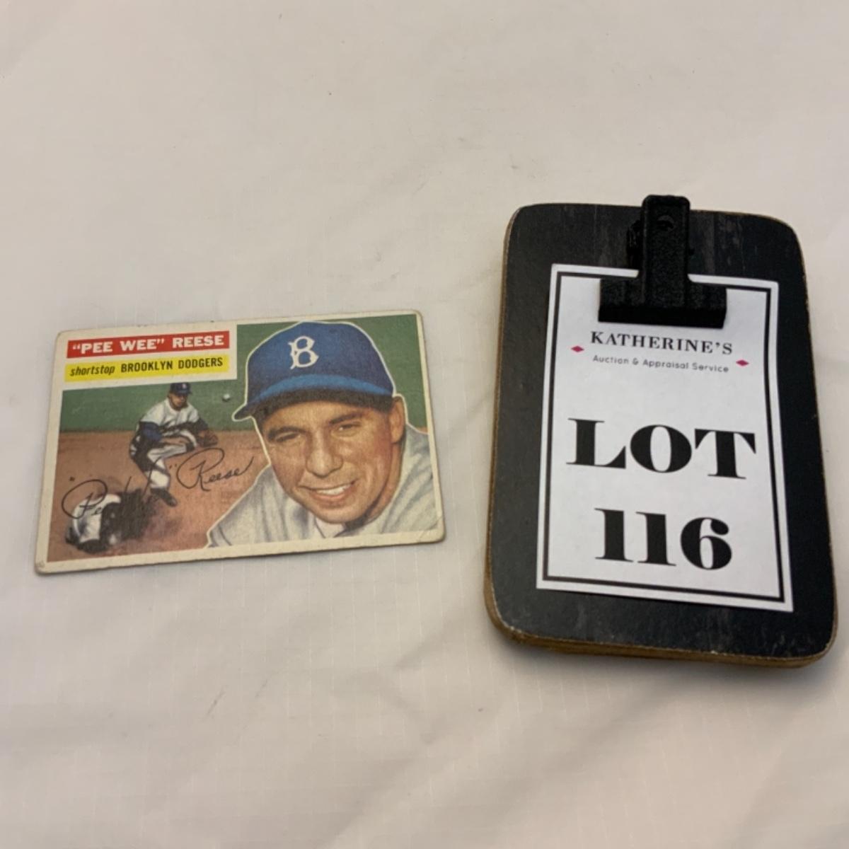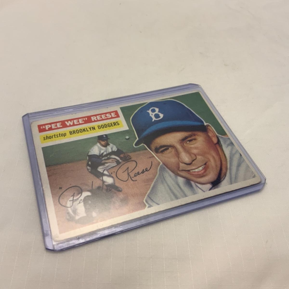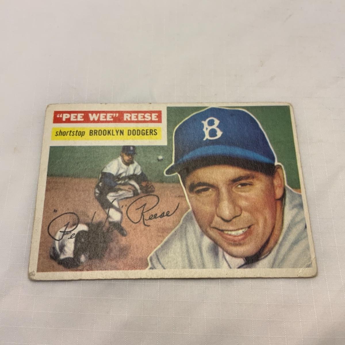 Very Good Condition for this 1956 TOPPS Baseball Card #260 of Pee Wee Reese. Reese was a player on the Brooklyn Dodgers and had a face only a mother could love. Please see photos for details and condition. ::: Shipping is available on this lot. If you require shipping you must let us know at the close of the auction. We will coordinate with you after the item has been won. Shipping fees will include insurance up to or exceeding the value of all items being mailed. If you have any questions regarding this lot please contact the auctioneer either via this website, by direct email or by phone. PICK UP TIMES and other important information can be found in the TERMS and DESCRIPTION of the auction. Please take a look for pertinent information. Thanks!