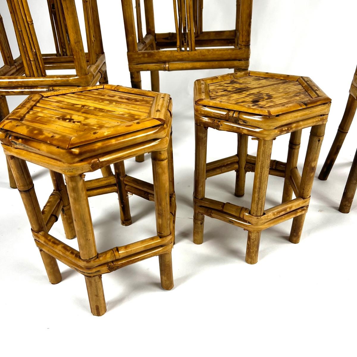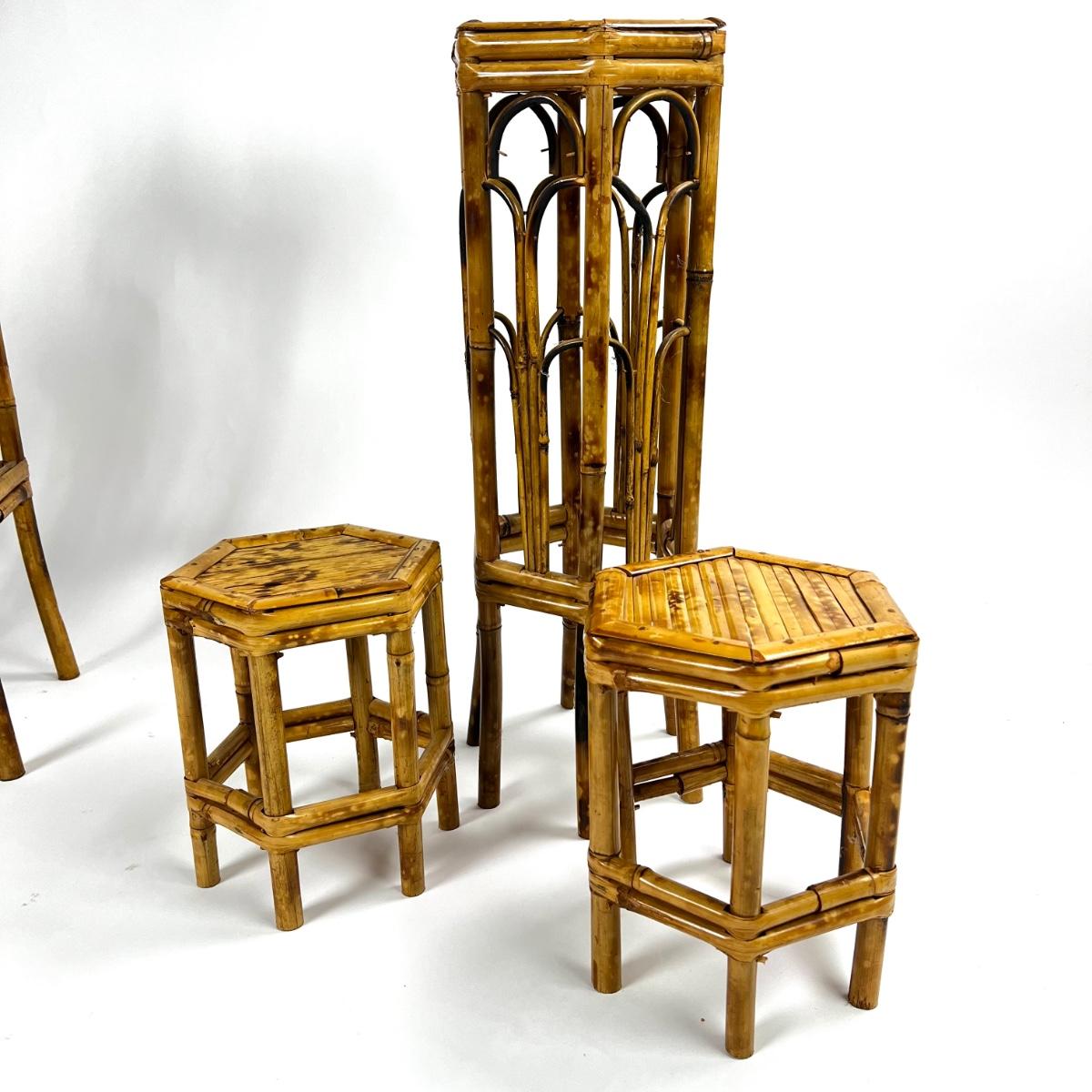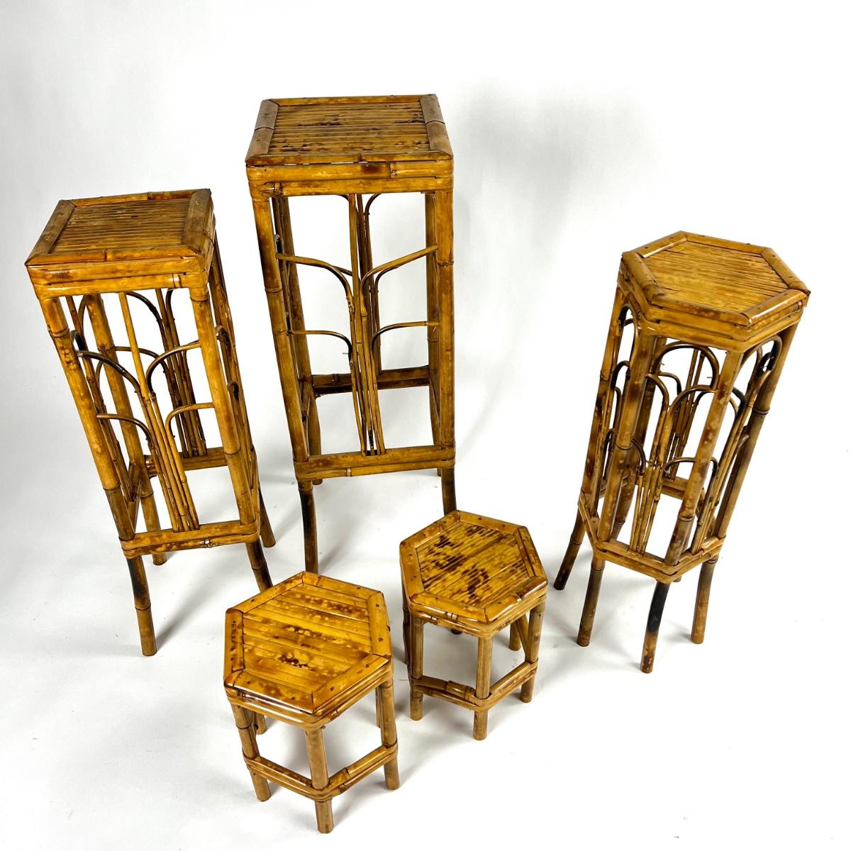 Set of Five Ratan Plant Stands/Side Tables. 2 square and 3 hexagon shapes.