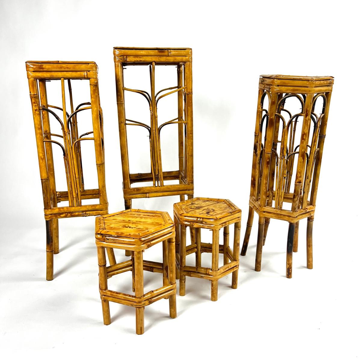 1160 Set of Five Ratan Plant Stands/Side Tables