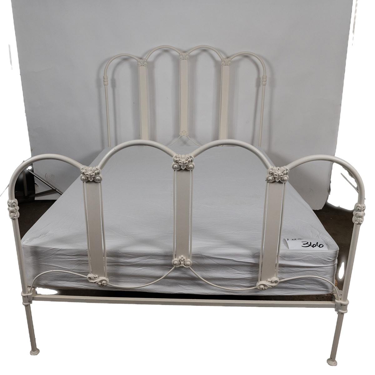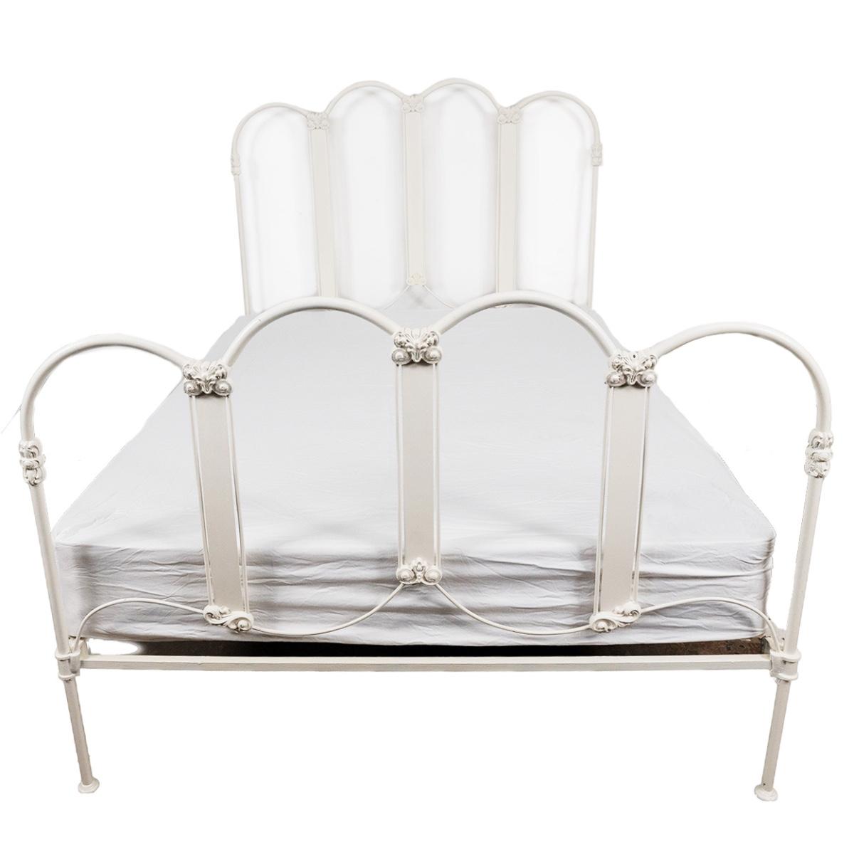 1163 Antique White Painted Iron Bed