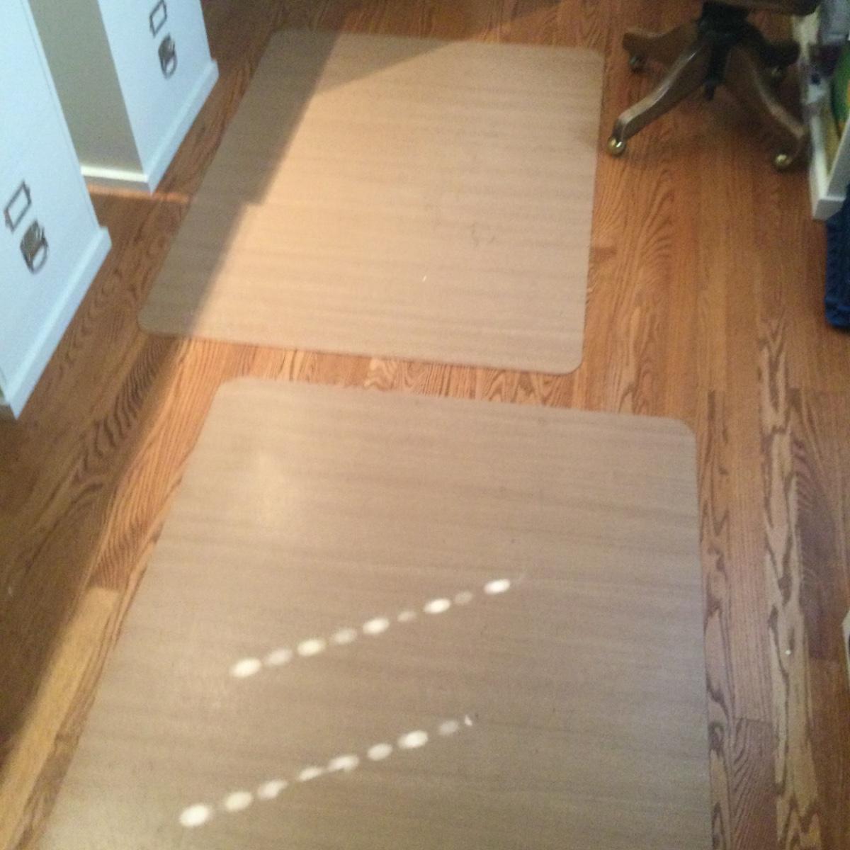There are 2 mats in this lot with a wood grain appearance, they measure 4’ x 3’