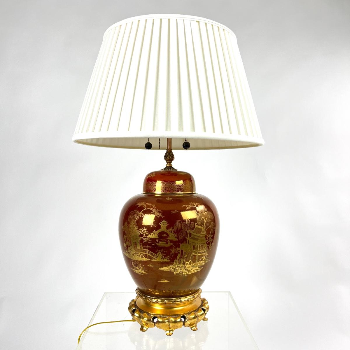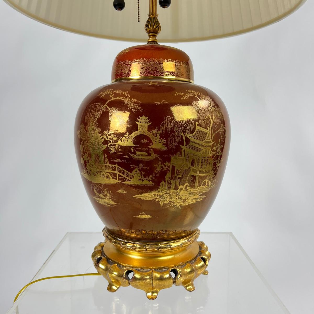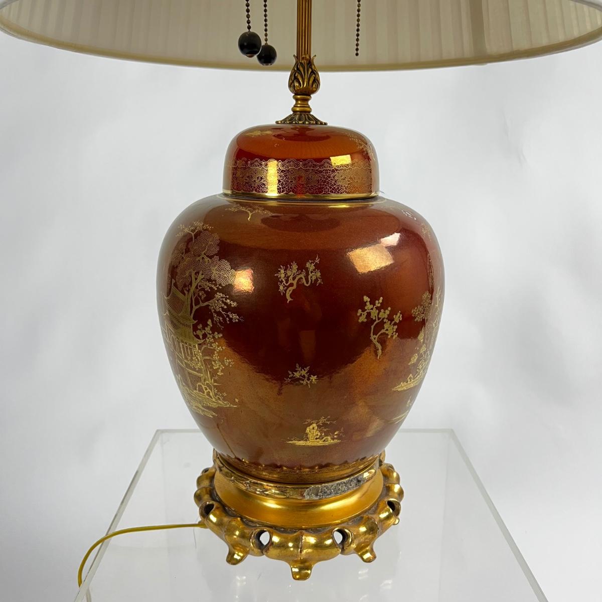 Vintage Crown Devon English Lustre Chinese Ginger Jar Lamp 1940s.