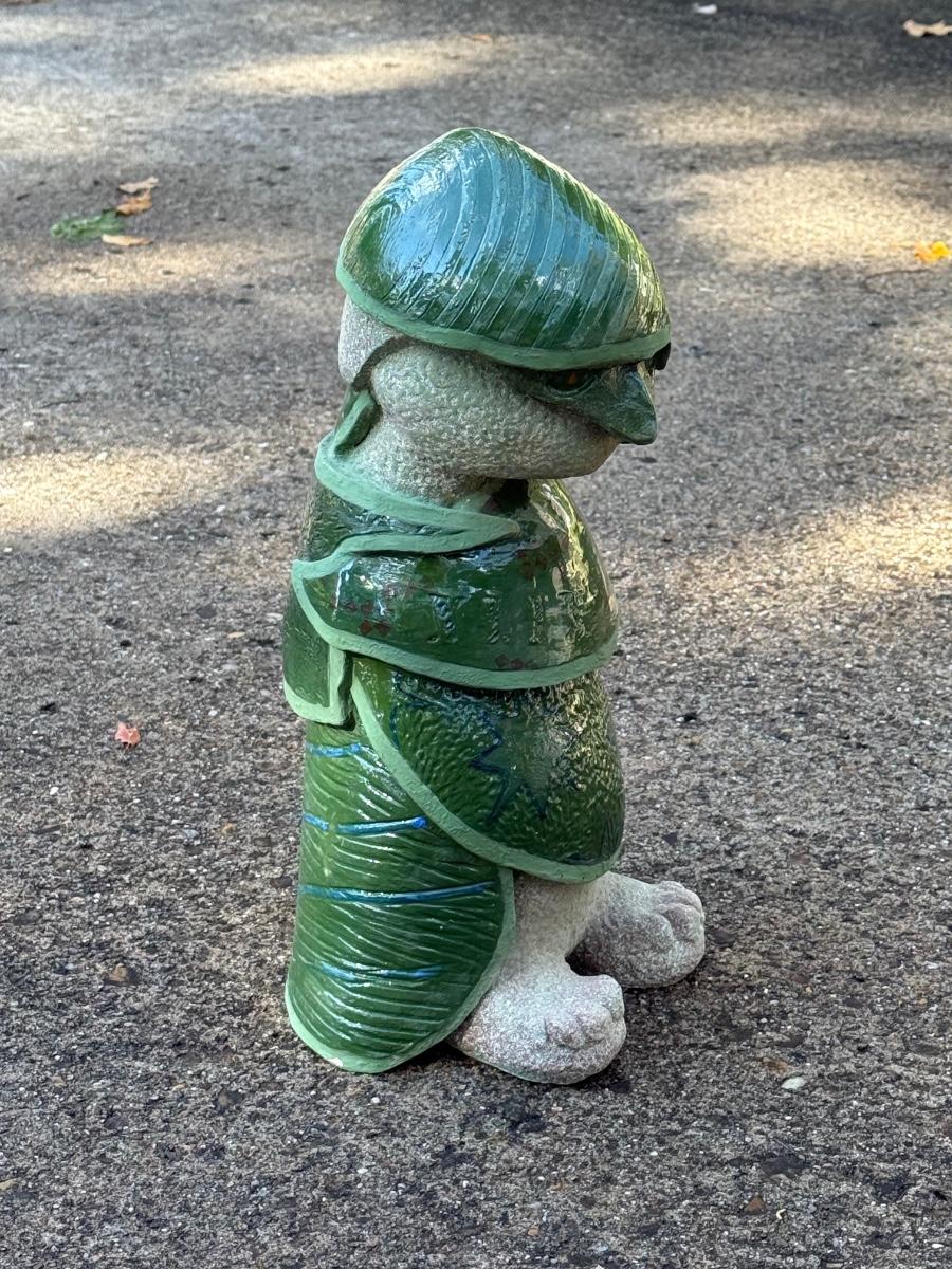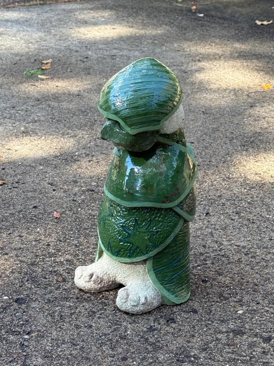1167 Artisan Made Green Sloth Style Sculpture with Green Hat by Baird Jannerl