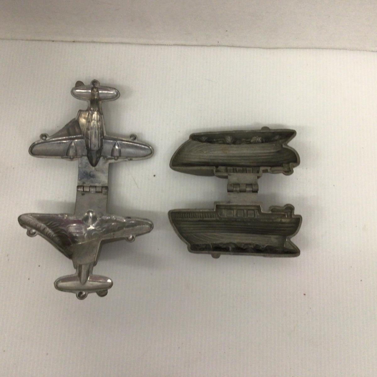 1169 Set of 2 Antique Eppelsheimer Boat Plane Pewter Ice Cream Molds
