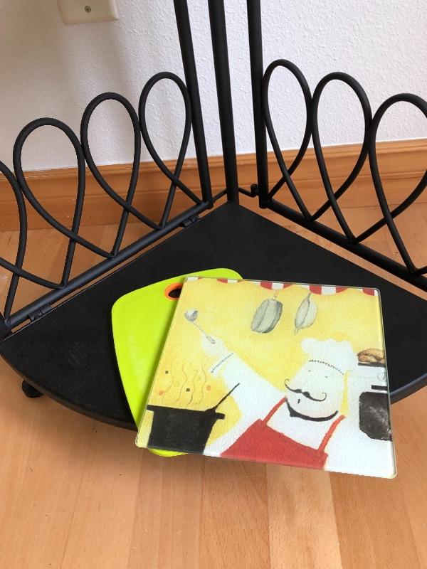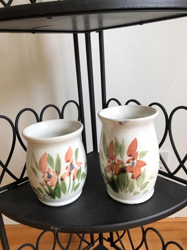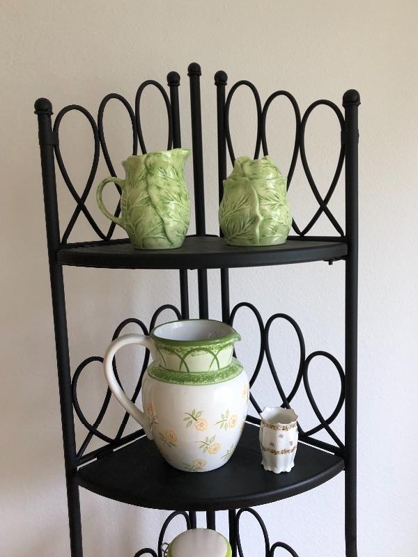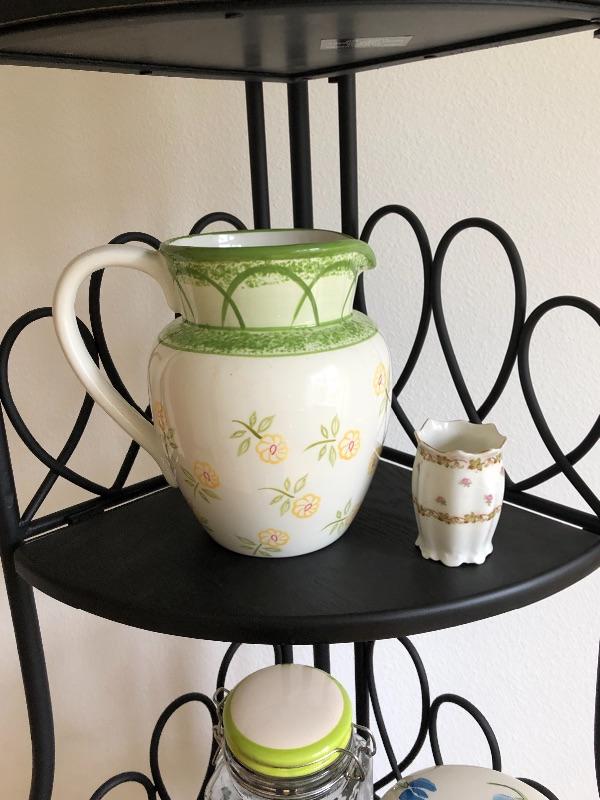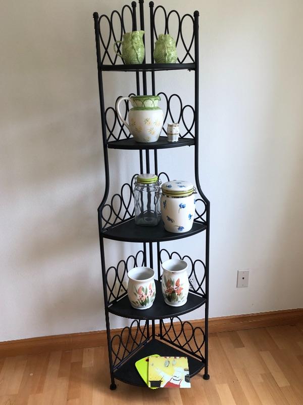 This light weight metal shelf is collapsible. I included several nice ceramics and pottery pieces, also included are two small cutting boards.