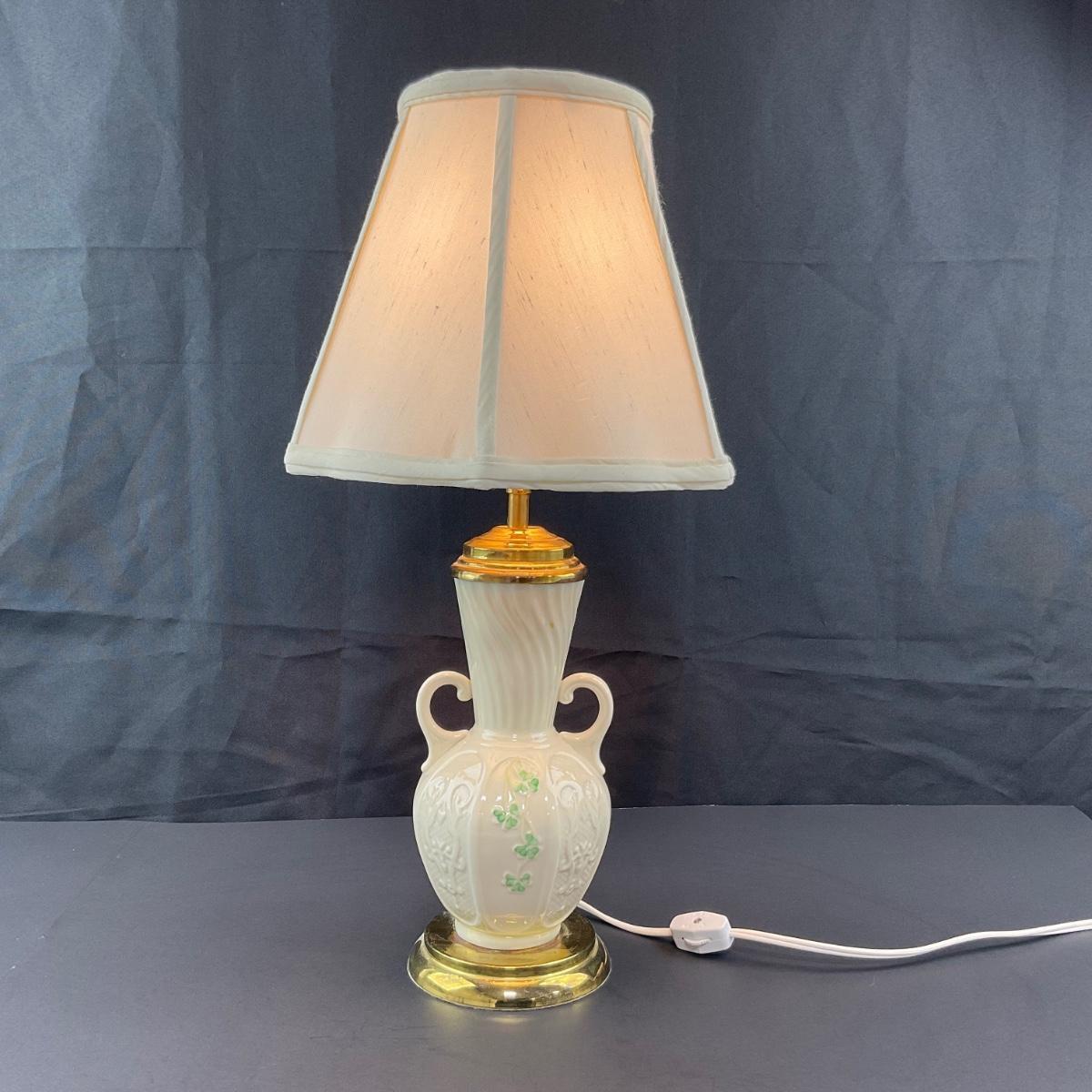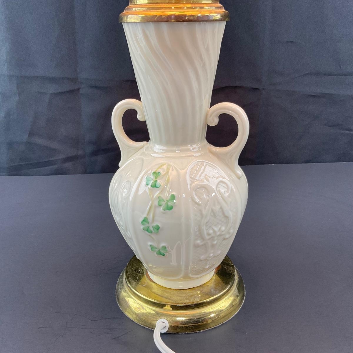 -117- BELLEEK | Shamrock Ireland Porcelain Lamp | Works