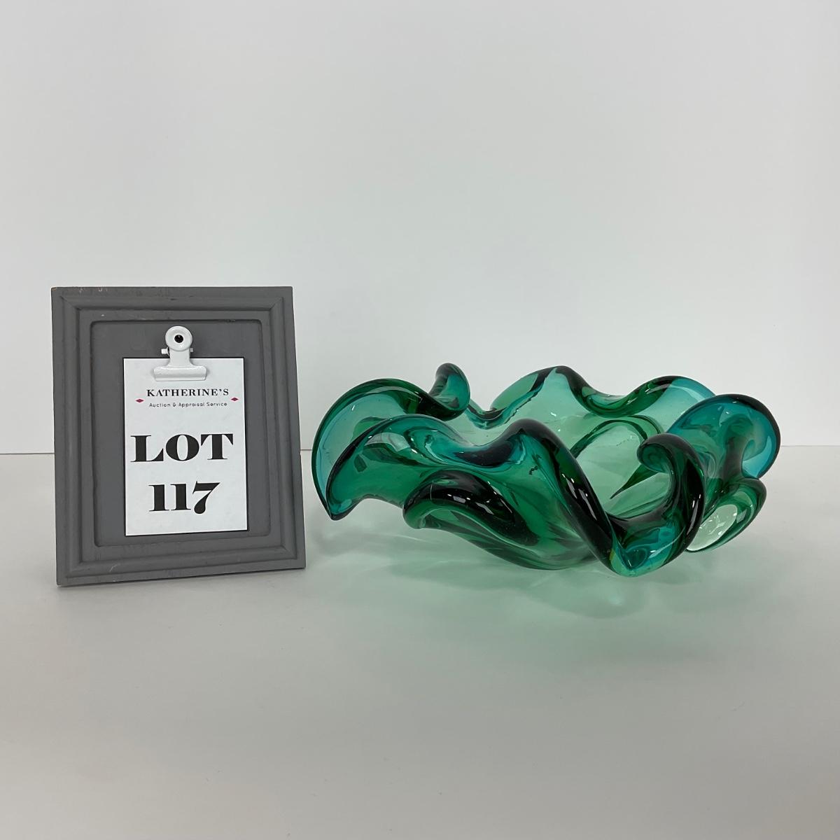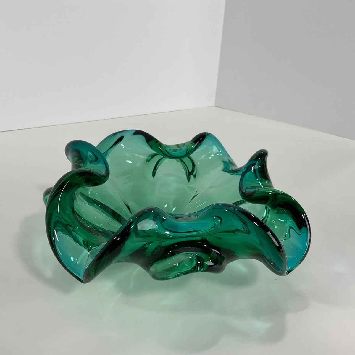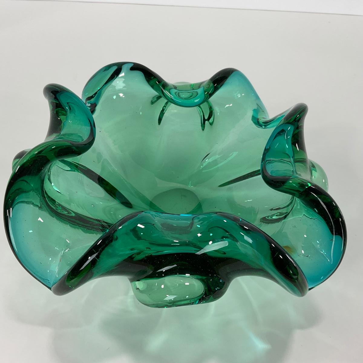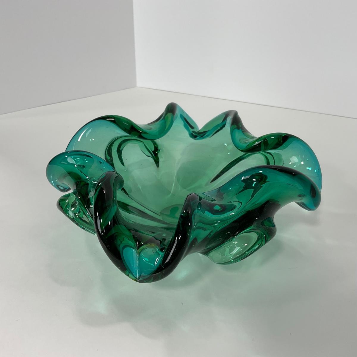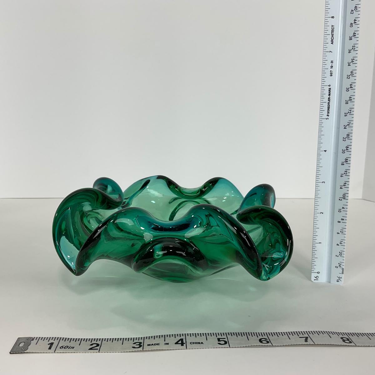 One mid century modern heavy blown art glass Murano Aventurine ashtray bowl in blue green color. A beautiful statement piece for a coffee or side table. Please see photos for details and condition. ::: Shipping is available on this lot. If you require shipping you must let us know at the close of the auction. We will coordinate with you after the item has been won. Shipping fees will include insurance up to or exceeding the value of all items being mailed. If you have any questions regarding this lot please contact the auctioneer either via this website, by direct email or by phone. PICK UP TIMES and other important information can be found in the TERMS and DESCRIPTION of the auction. Please take a look for pertinent information. Thanks!