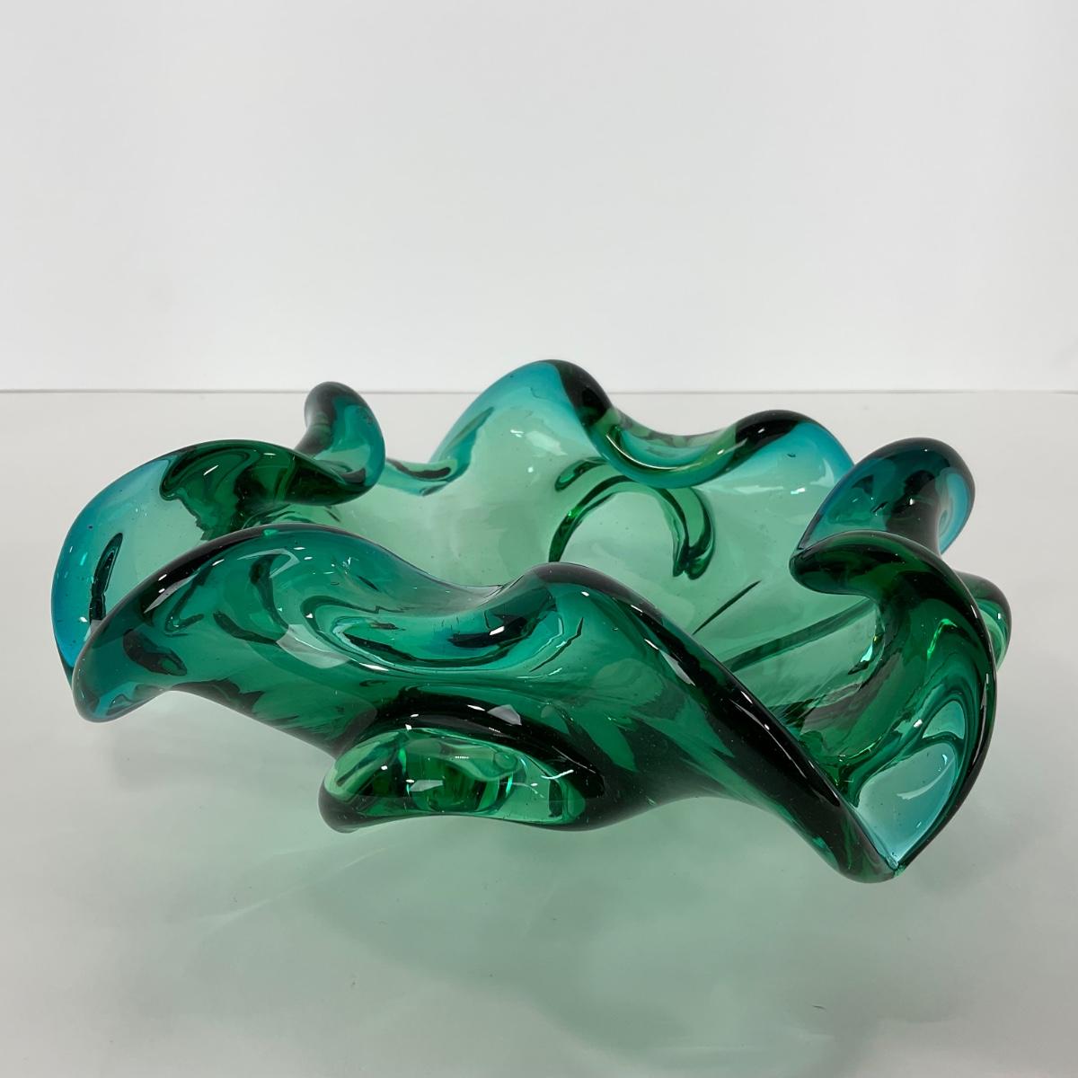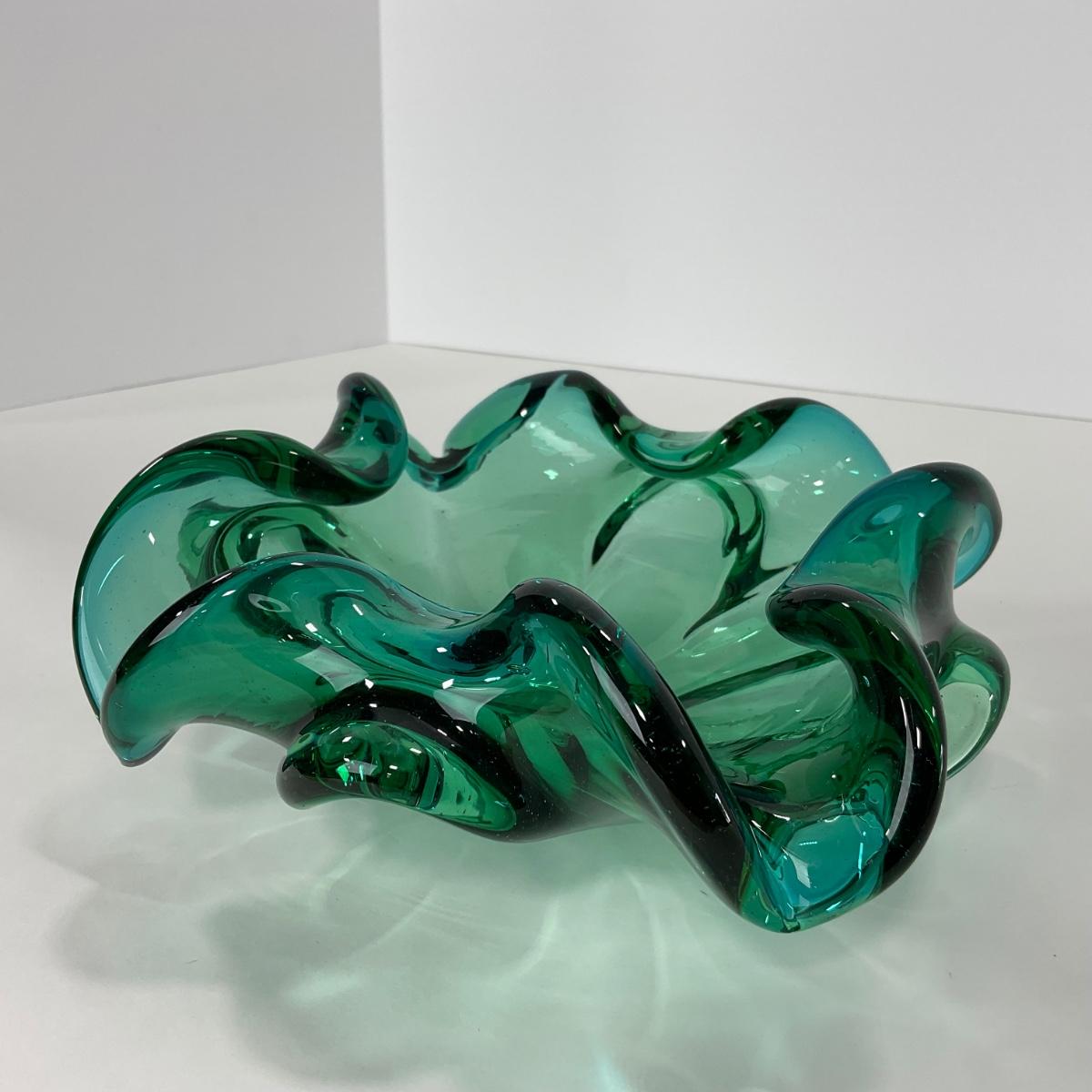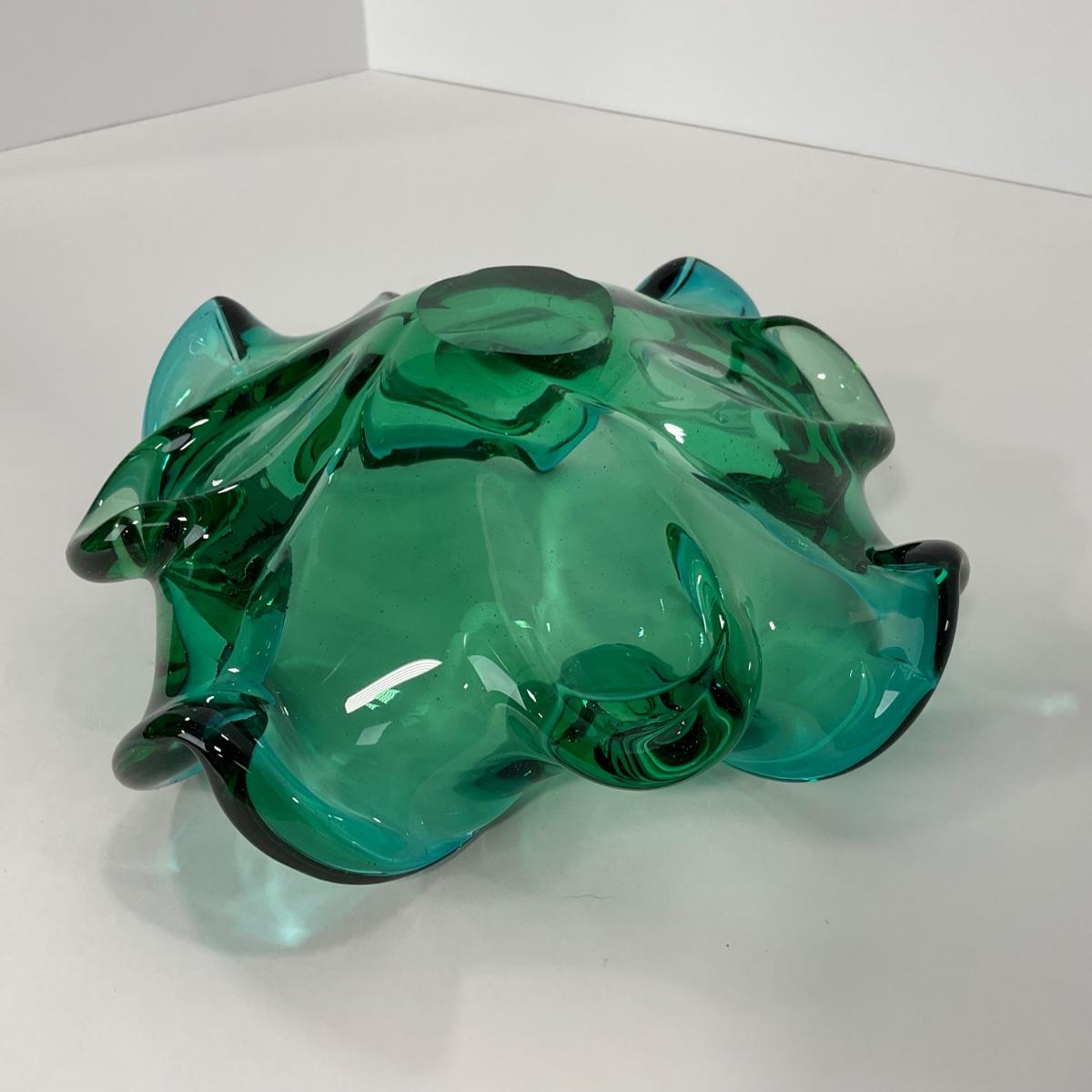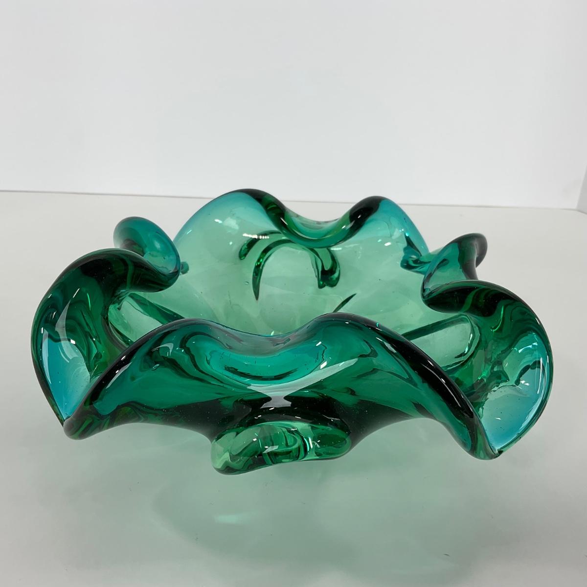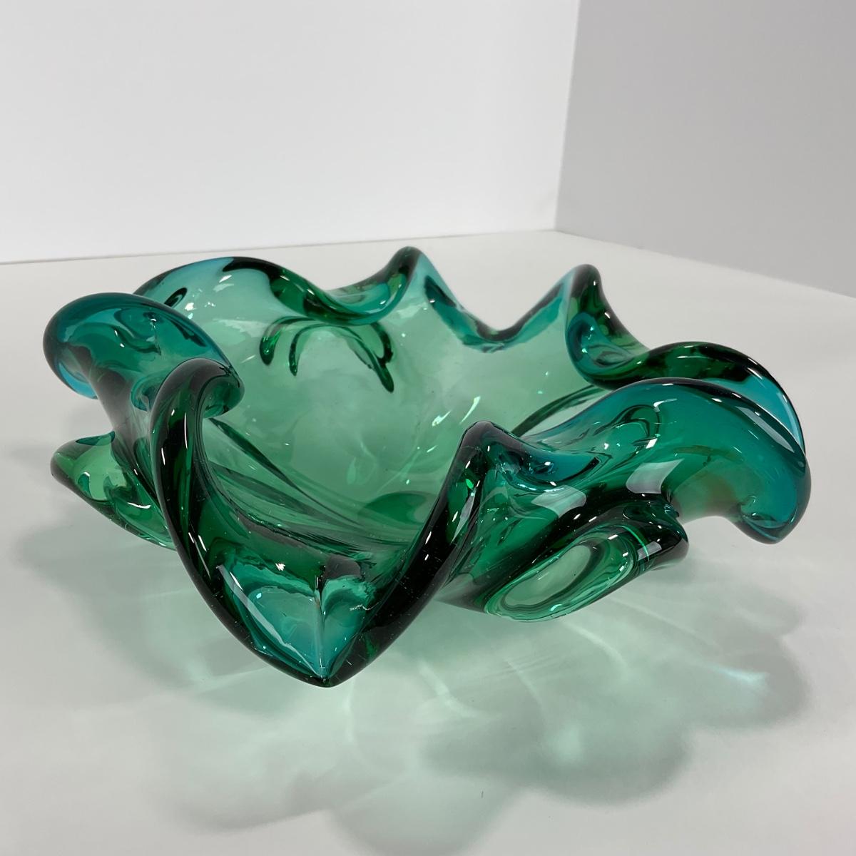 One mid century modern heavy blown art glass Murano Aventurine ashtray bowl in blue green color. A beautiful statement piece for a coffee or side table. Please see photos for details and condition. ::: Shipping is available on this lot. If you require shipping you must let us know at the close of the auction. We will coordinate with you after the item has been won. Shipping fees will include insurance up to or exceeding the value of all items being mailed. If you have any questions regarding this lot please contact the auctioneer either via this website, by direct email or by phone. PICK UP TIMES and other important information can be found in the TERMS and DESCRIPTION of the auction. Please take a look for pertinent information. Thanks!