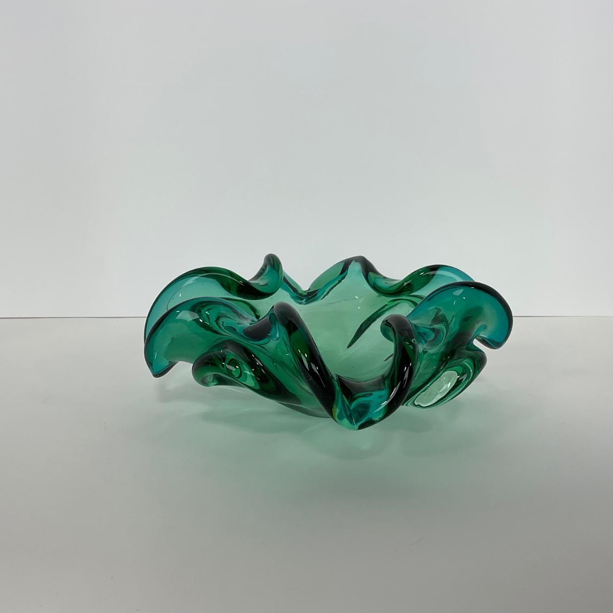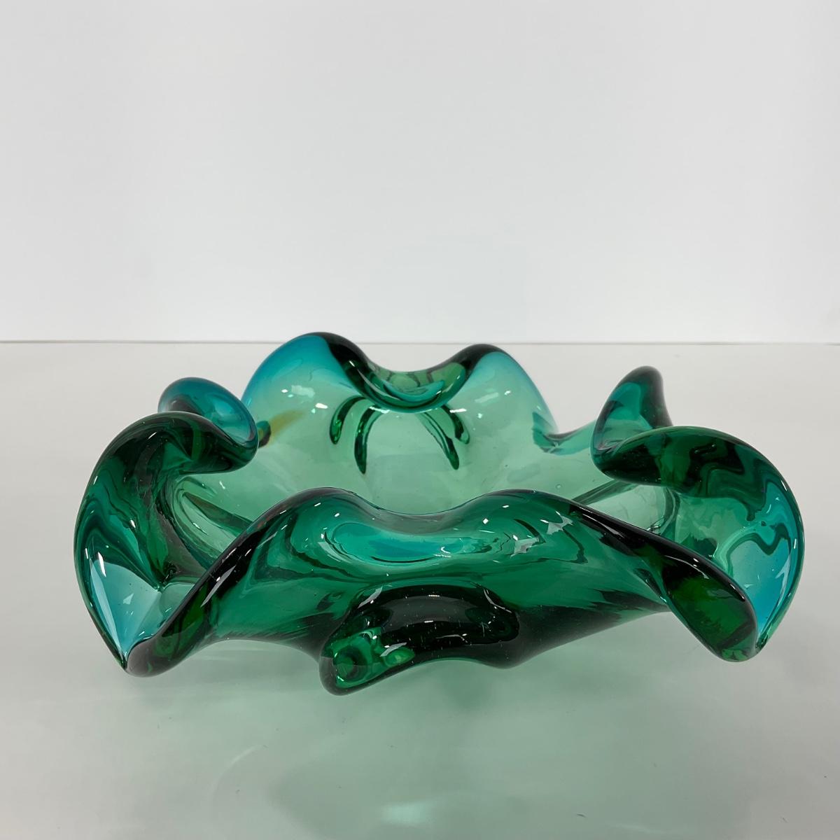 -117- GLASSWARE | MCM Art Glass Murano Aventurine Ashtray