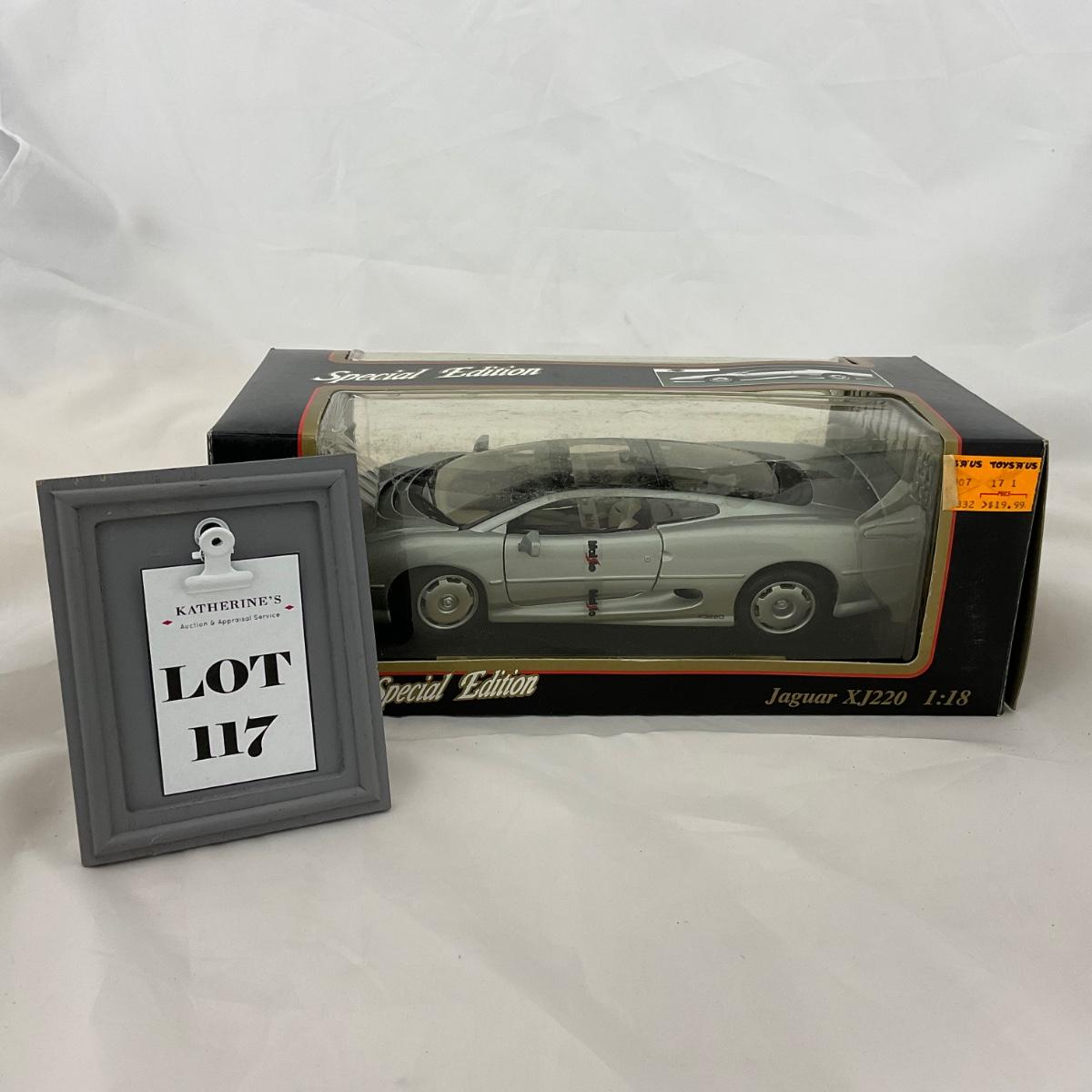 One Maisto die cast 1:18 scale Jaguar XJ220 in box. Please see photos for details and condition. ::: Shipping is available on this lot. If you require shipping you must let us know at the close of the auction. We will coordinate with you after the item has been won. Shipping fees will include insurance up to or exceeding the value of all items being mailed. If you have any questions regarding this lot please contact the auctioneer either via this website, by direct email or by phone. PICK UP TIMES and other important information can be found in the TERMS and DESCRIPTION of the auction. Please take a look for pertinent information. Thanks!