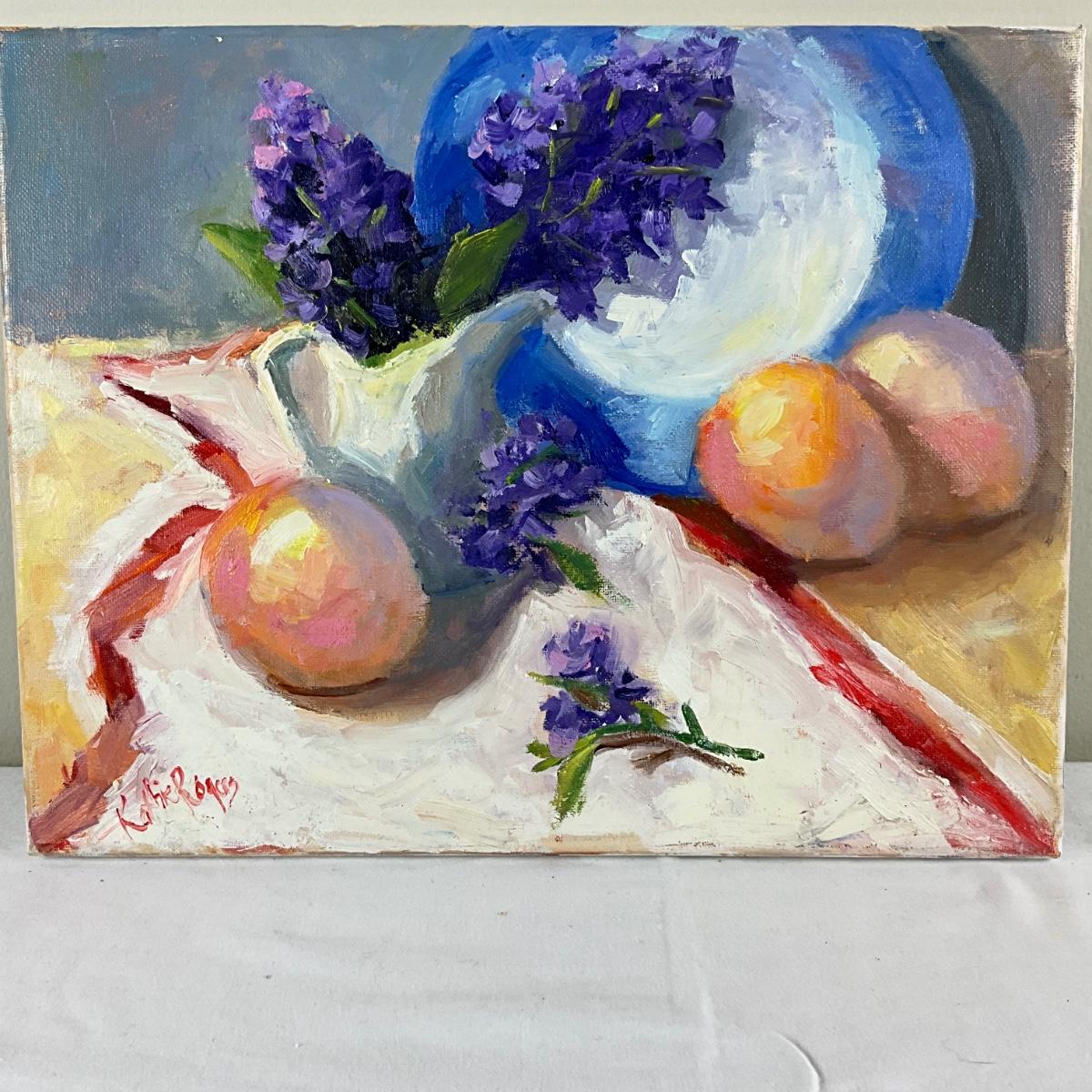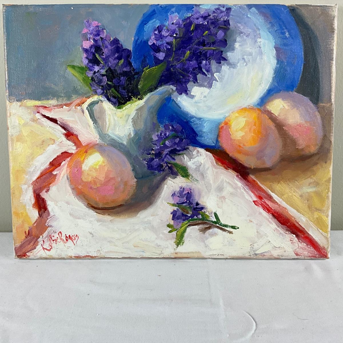 117 Original Oil on Canvas Painting "Lilacs & Peaches" by Kathie Rogers