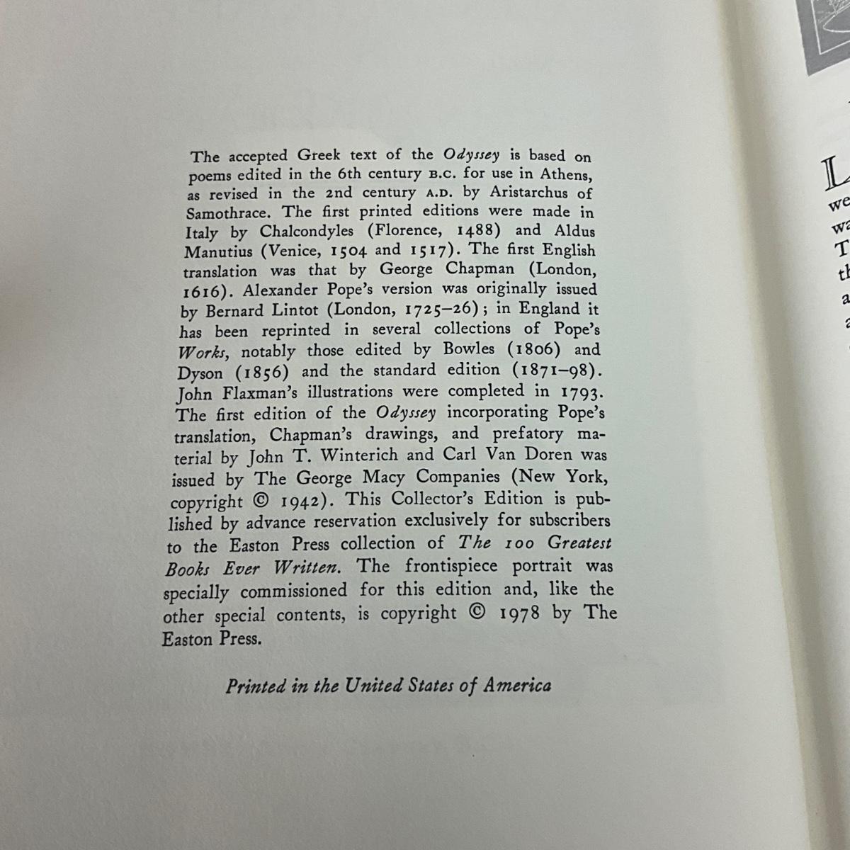 117 "The Odyssey of Homer" by HOMER. 1978; The Easton Press "Collector's Edition"