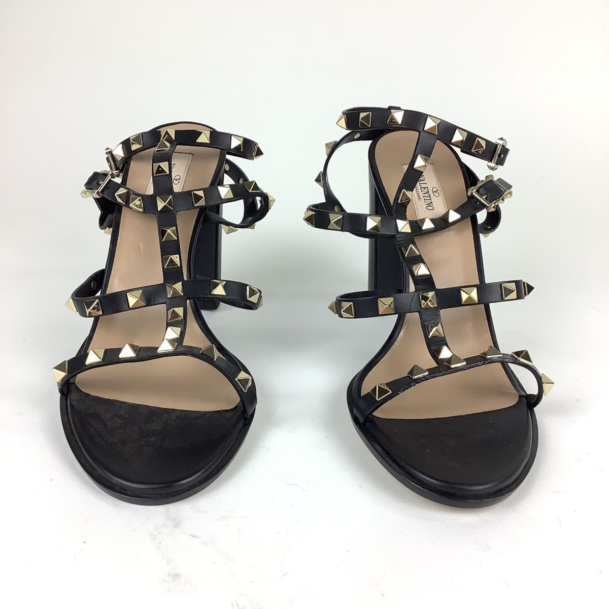 116 VALENTINO Rockstud Black Calfskin Sandals Size 41