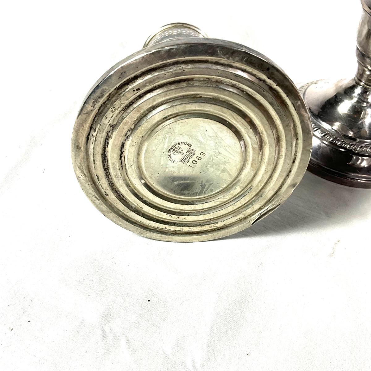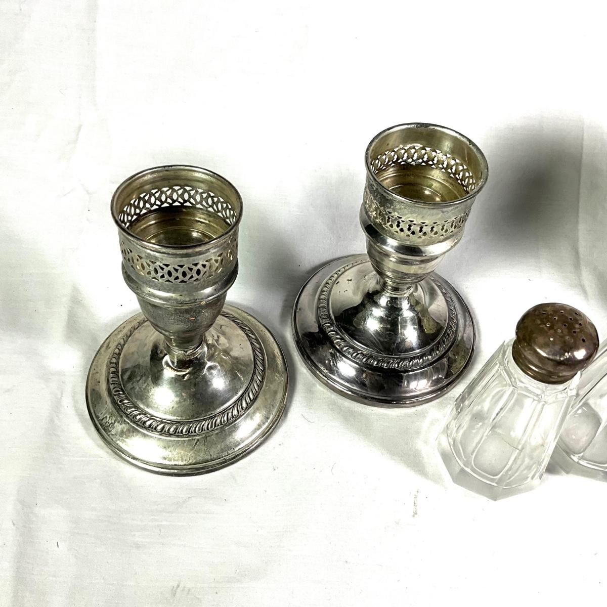 Candlesticks are 4.5" high and shakers are 3.5" and 4" high