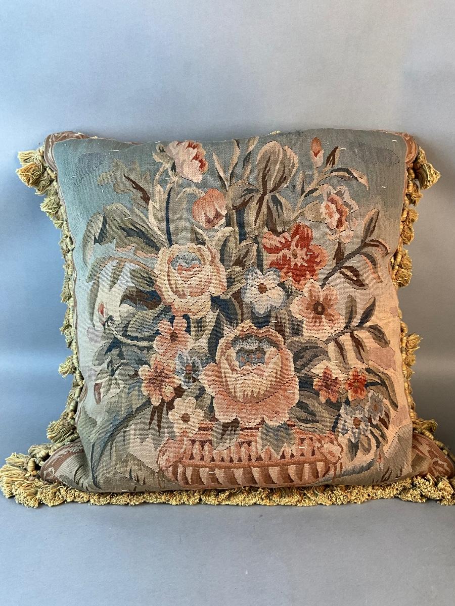 1173 Vintage Aubusson French Needlepoint Down Pillow