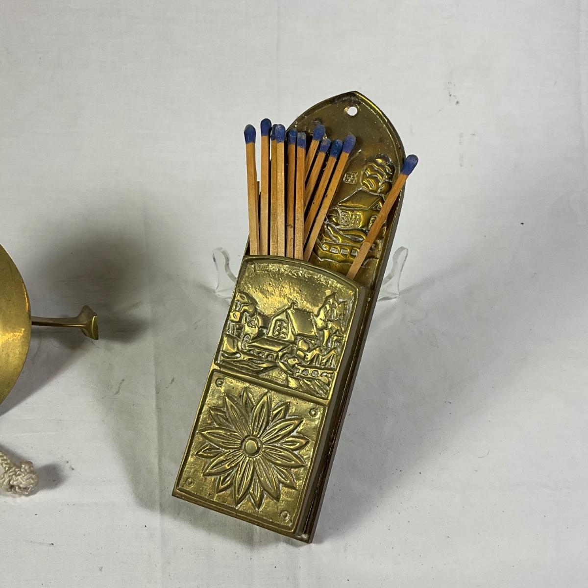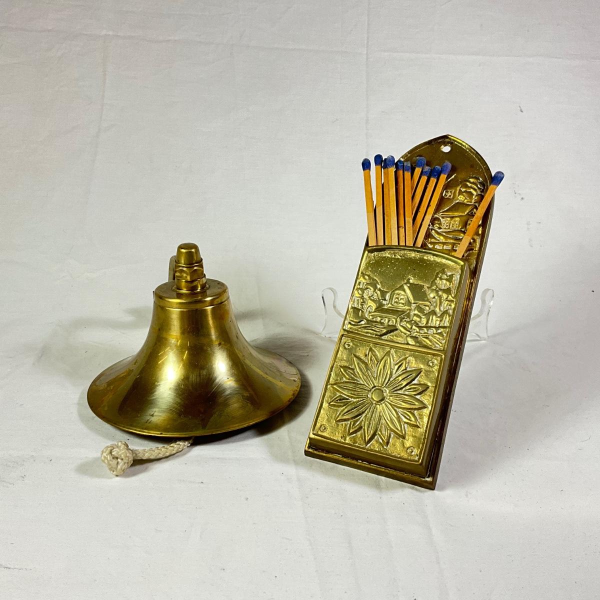 1174 Vintage Brass Nautical Bell with Brass Wall Match Holder