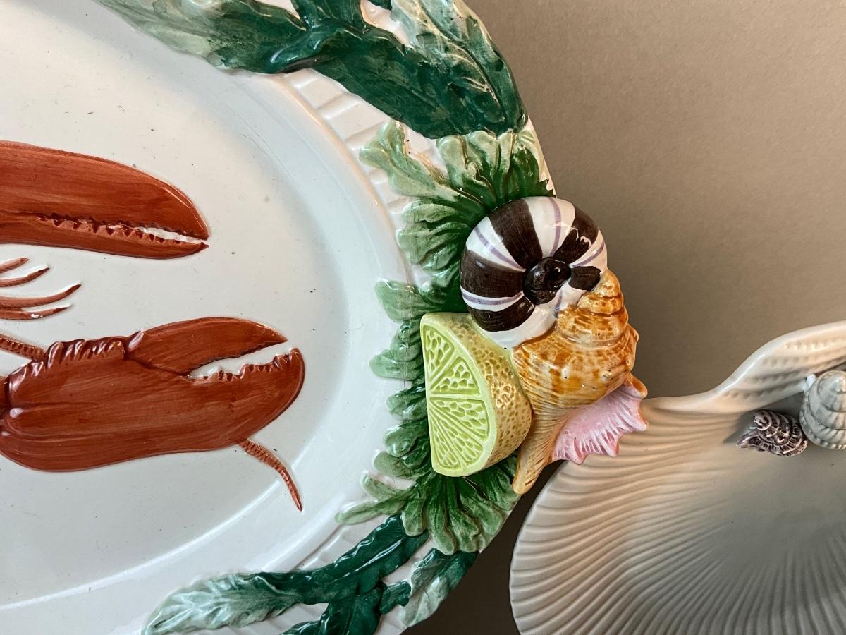 Platter and Plates are Fitz and Floyd Pottery with 1-Lobster platter measuring 19.5" wide x 13.5" high