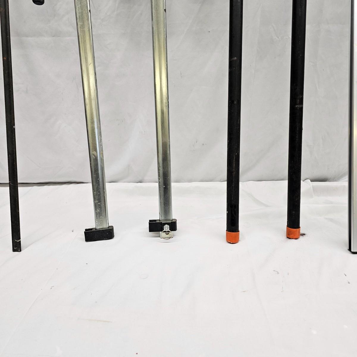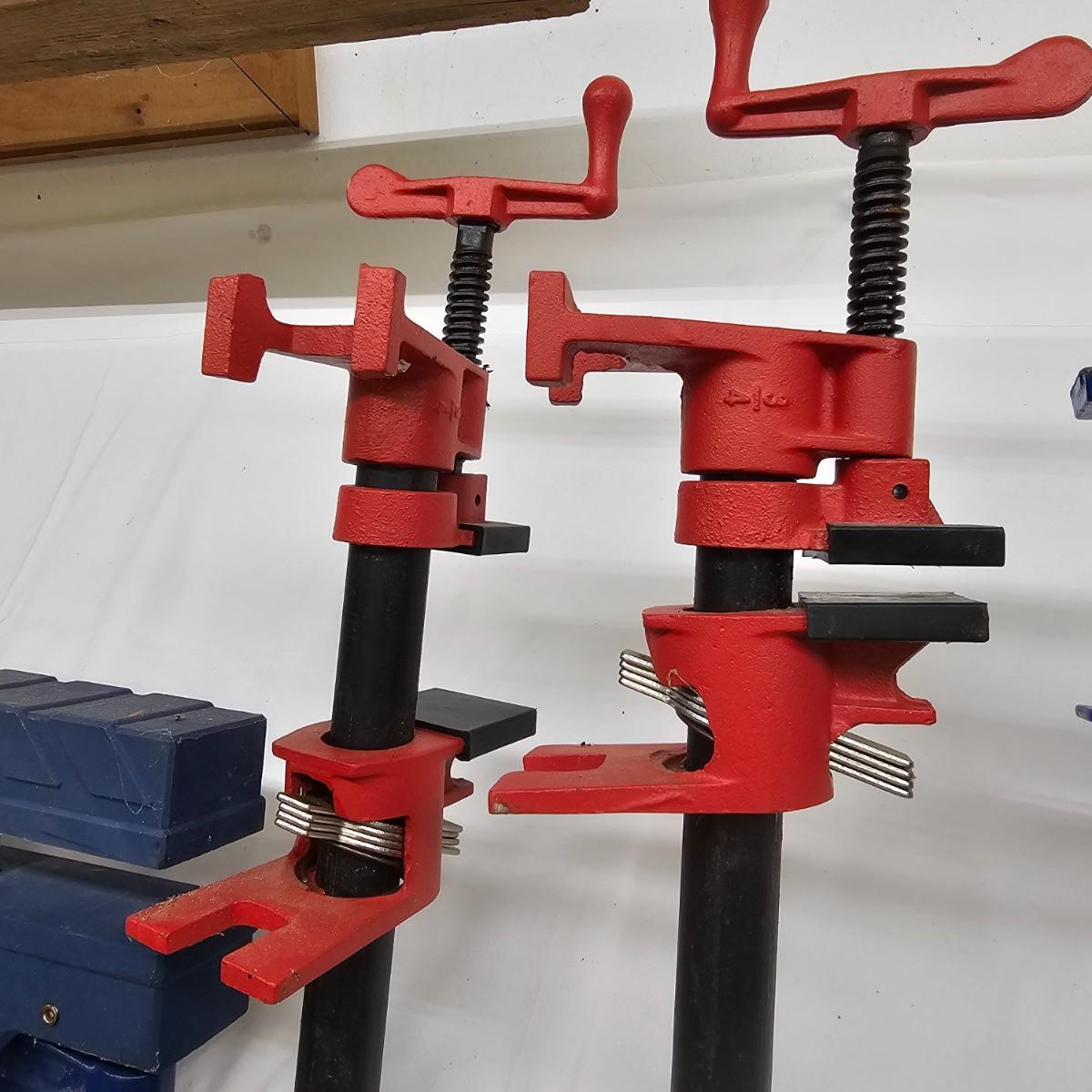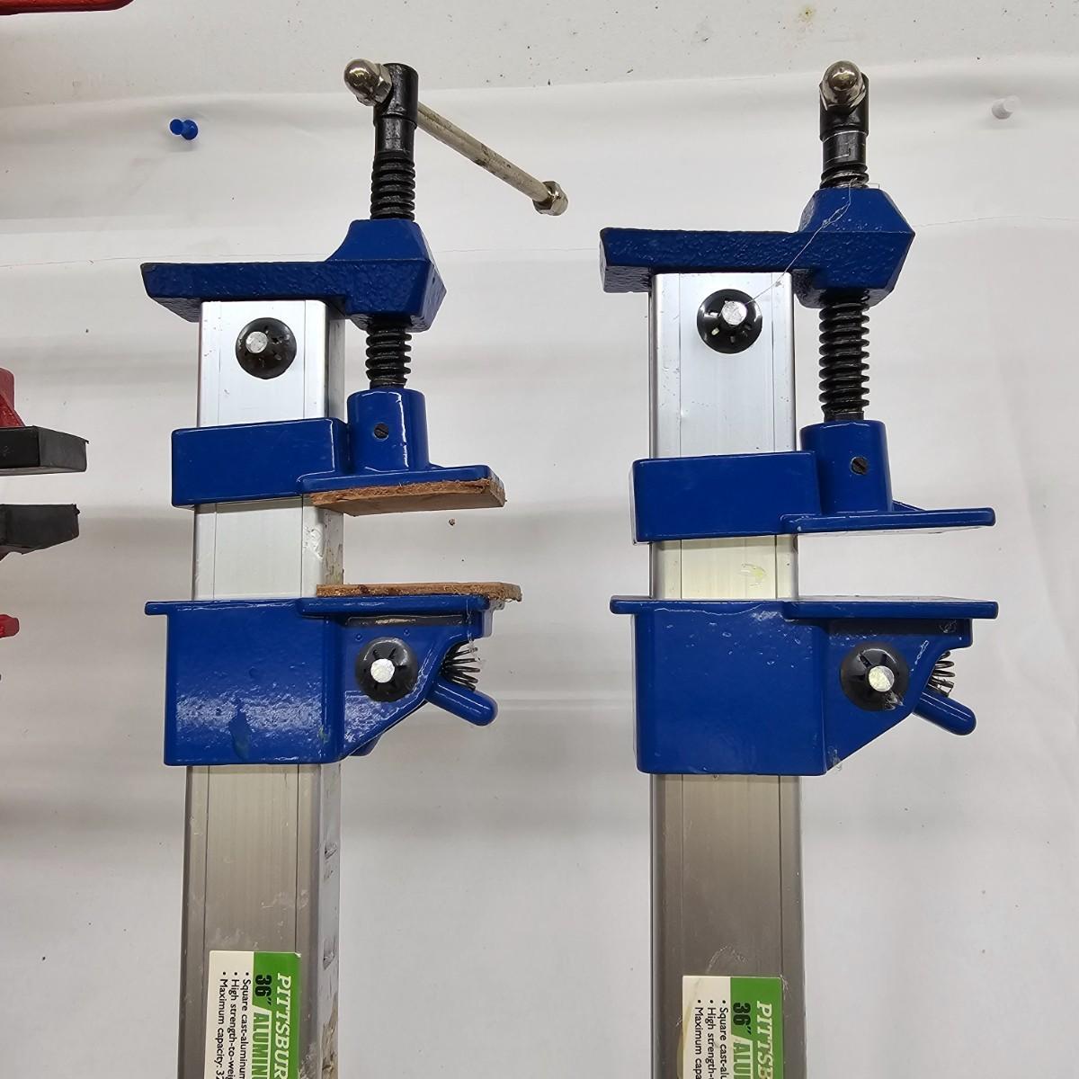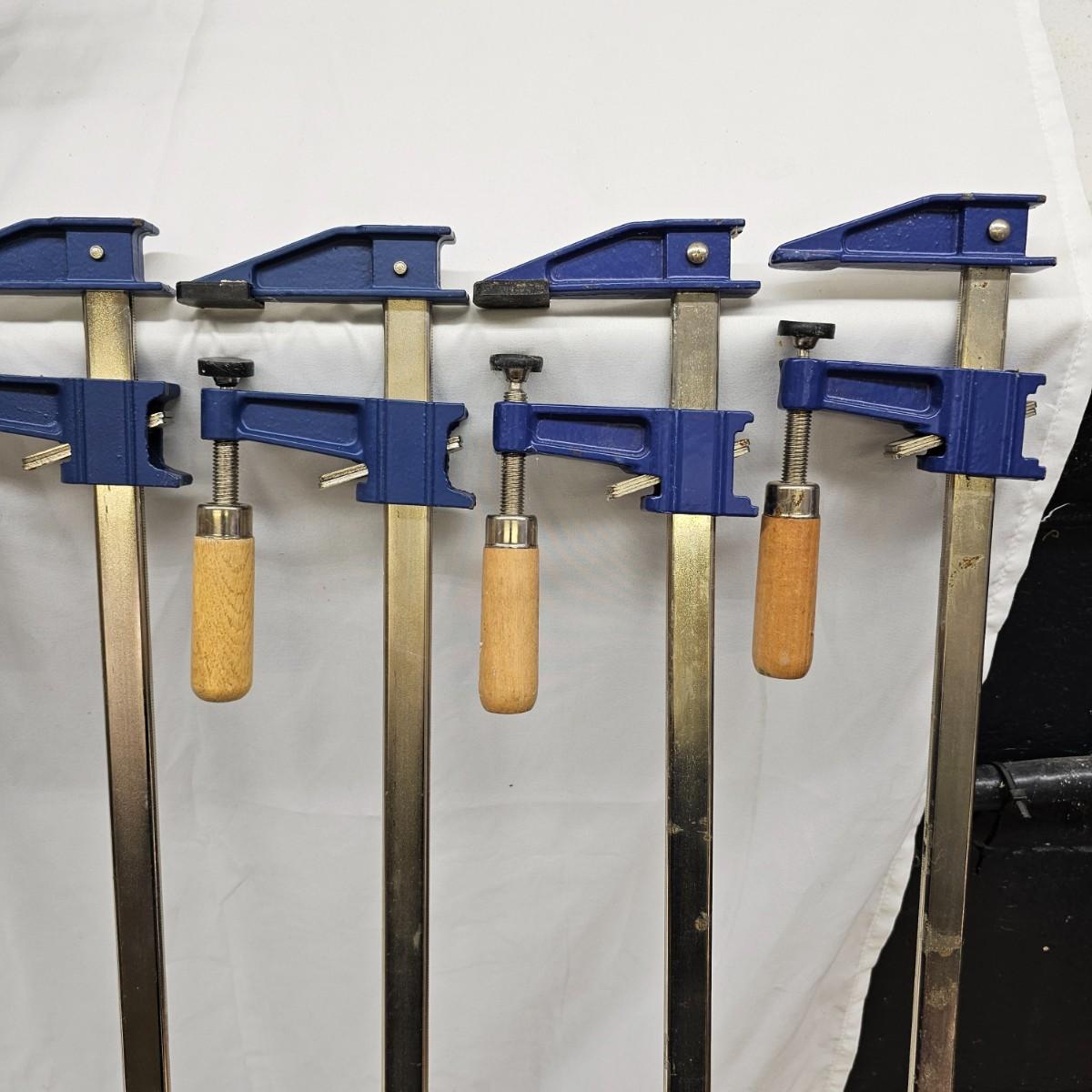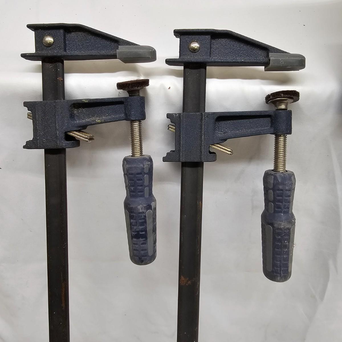 24" to 36" clamps from Irwin, Pittsburgh and others. Two pipe style clamps, rest are adjustable bar style. A dozen total items. All items used, see photos for details. Local pickup only.