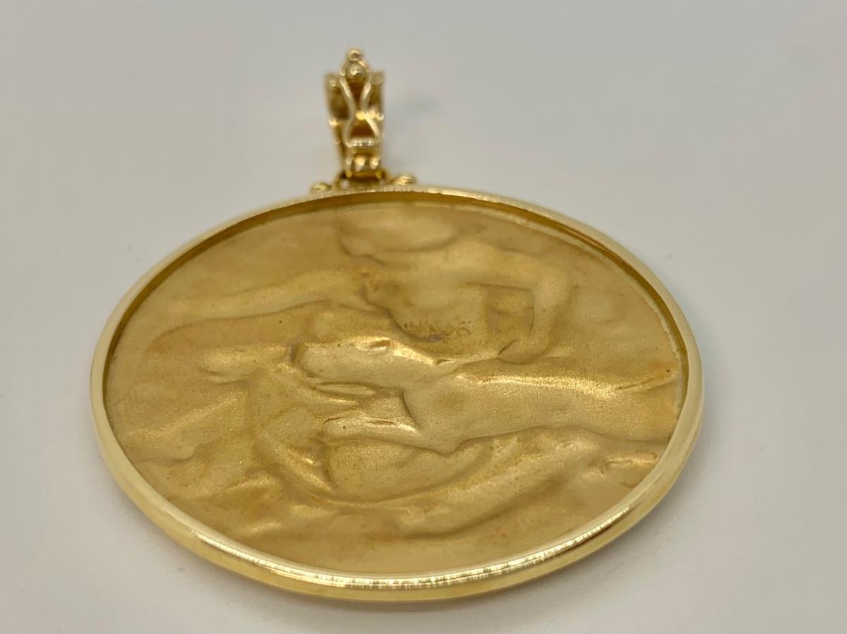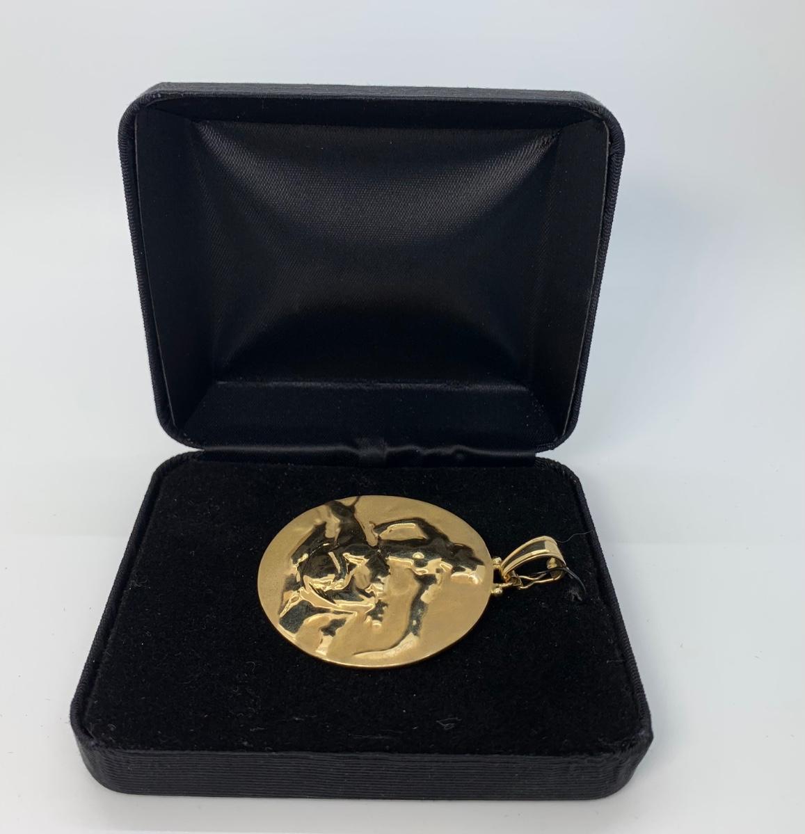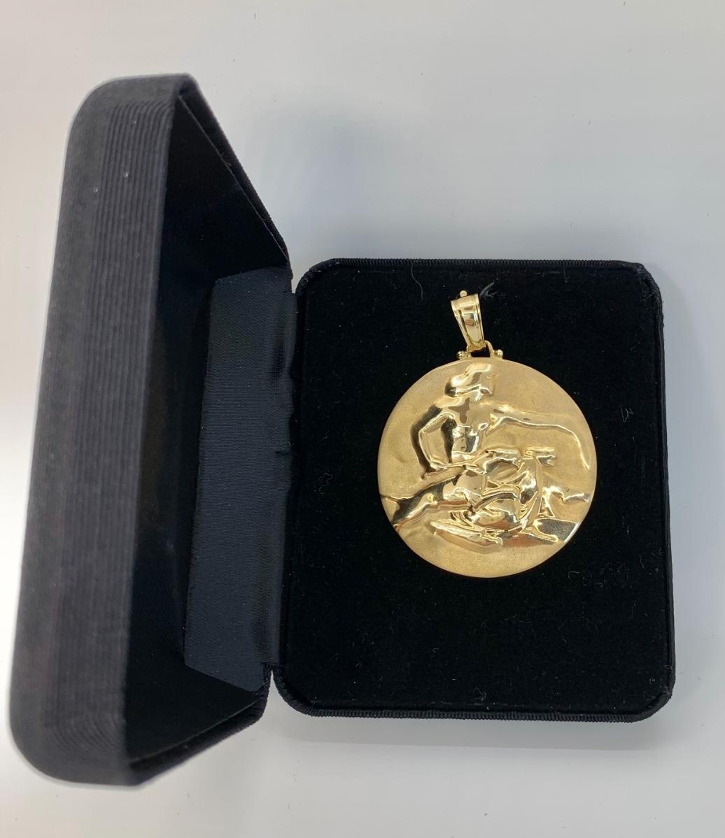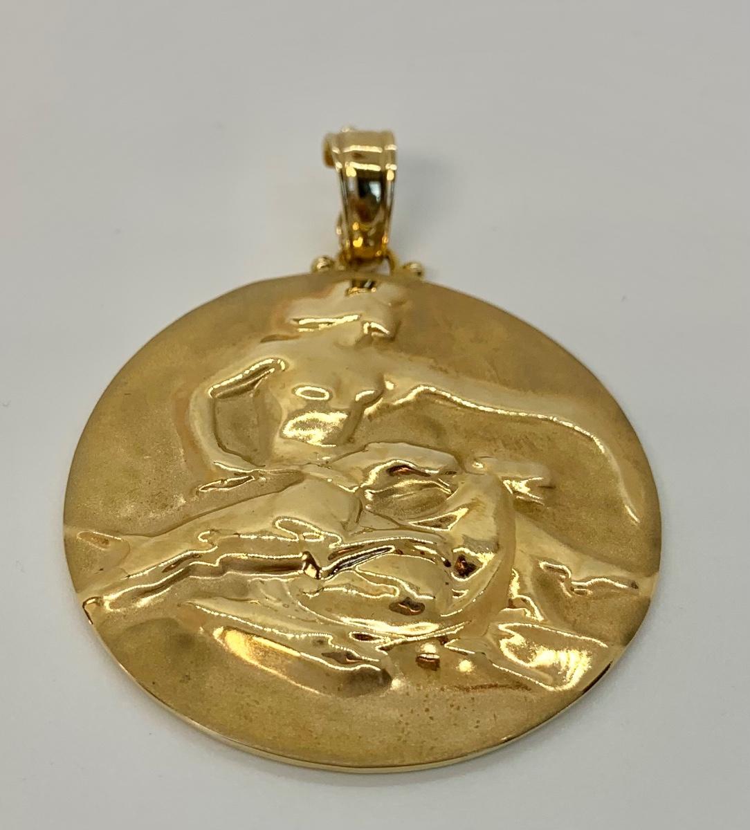 118: 9.7g 14K Lady & Her Hounds Medallion Pendant