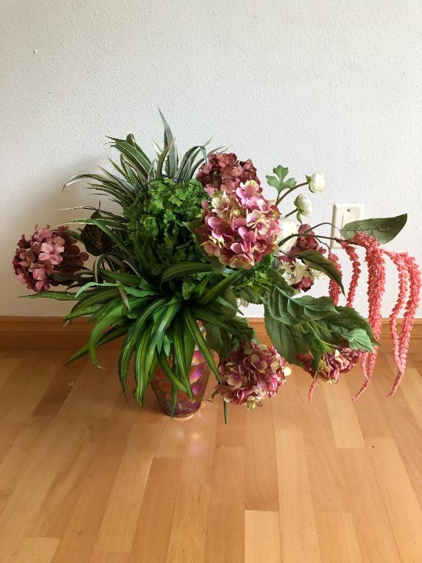 118: Vivian Flasch Framed Print, Footstool and Potted Silk Floral Arrangement