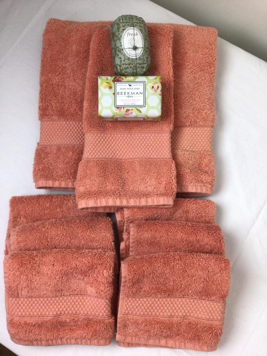 6 wash cloths, 3 hand towels, 2 soaps and more