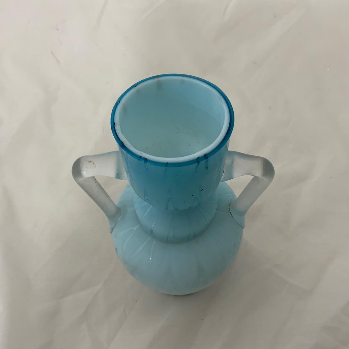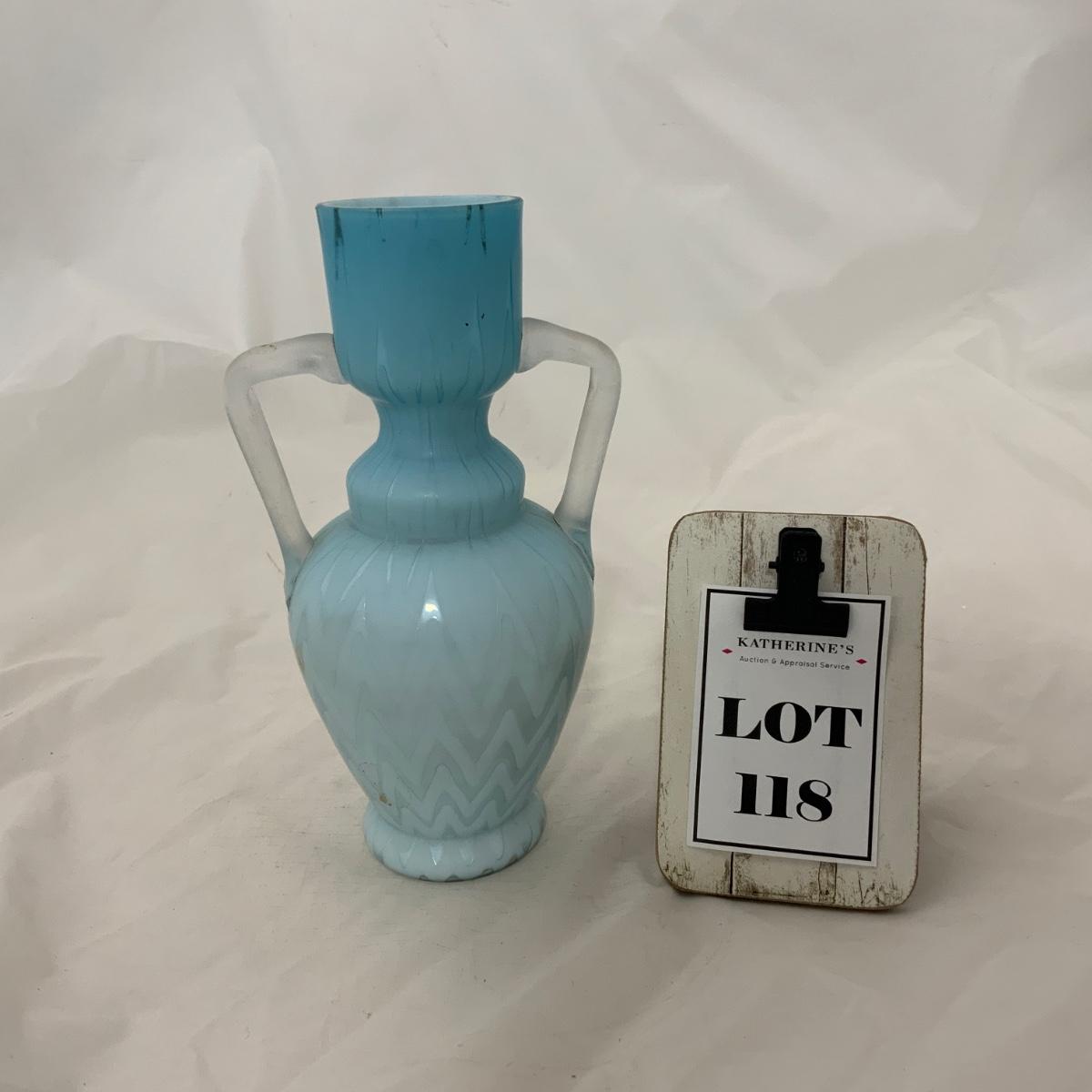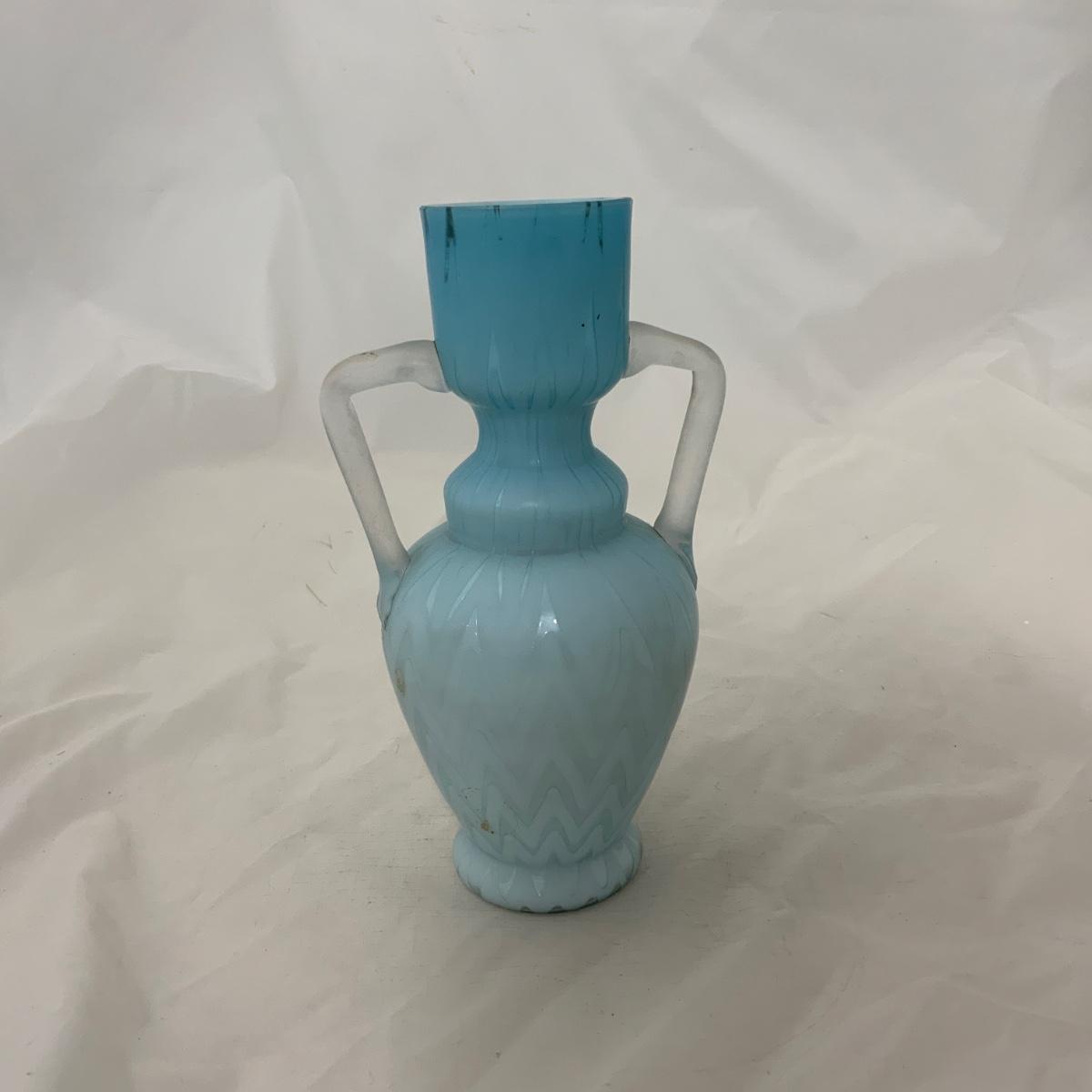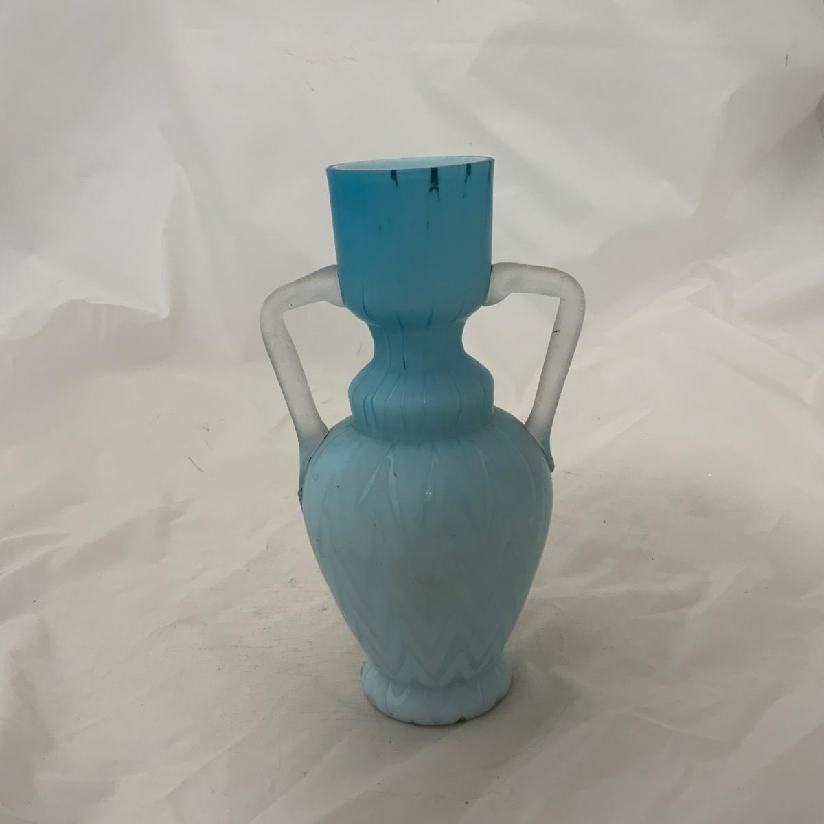 .118. Blue Herringbone Double Handled Satin Vase | c. 1900