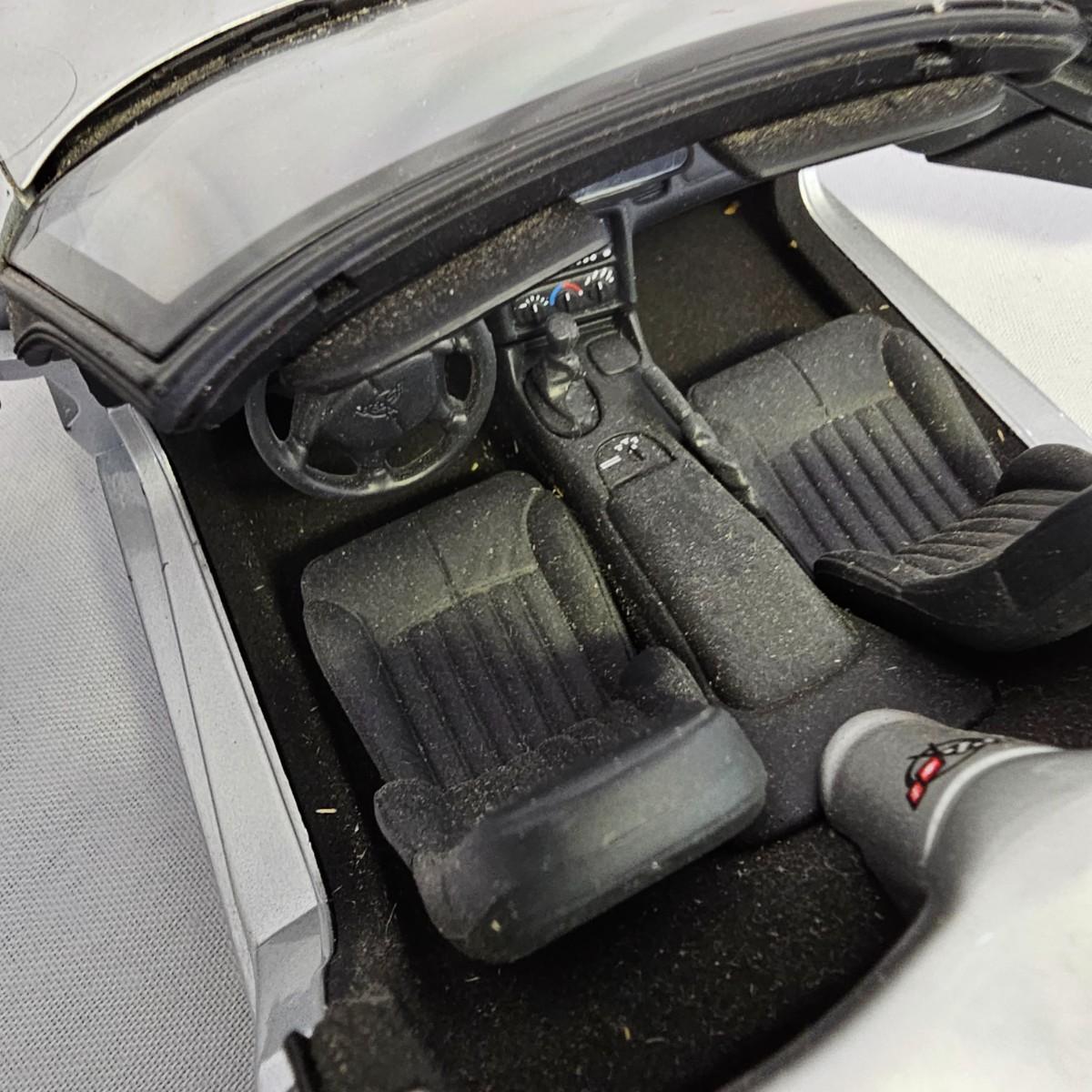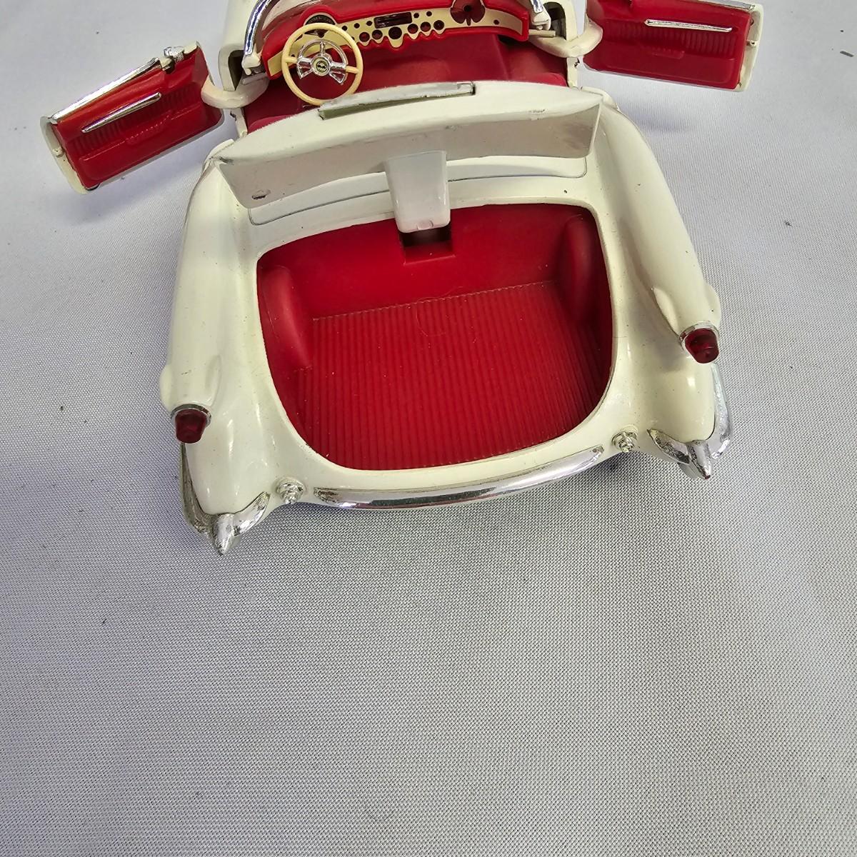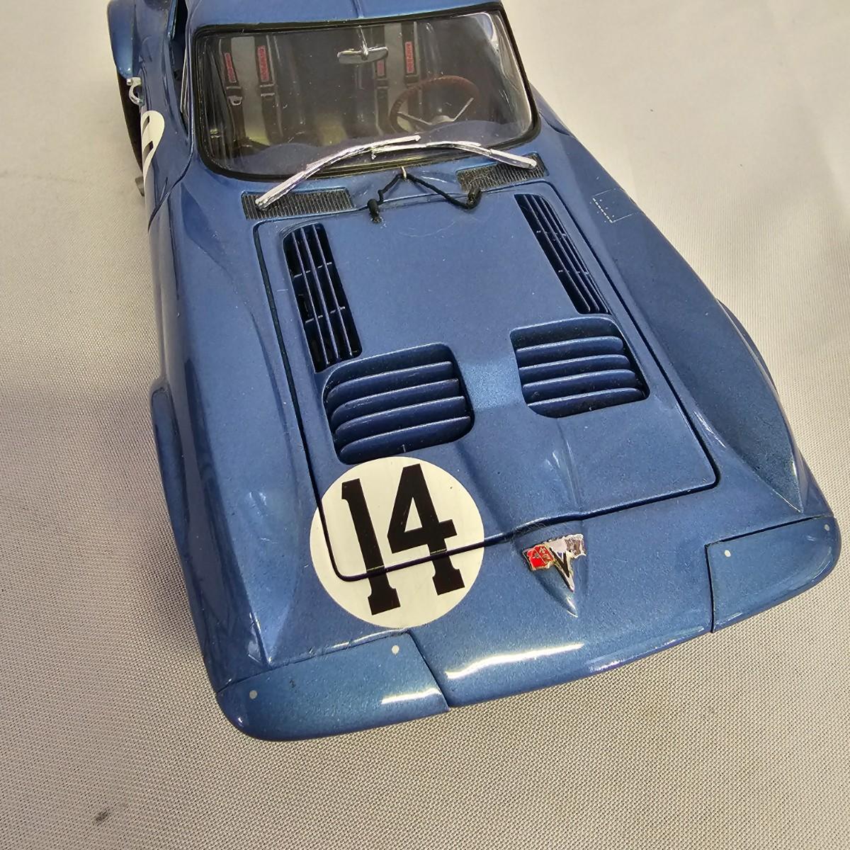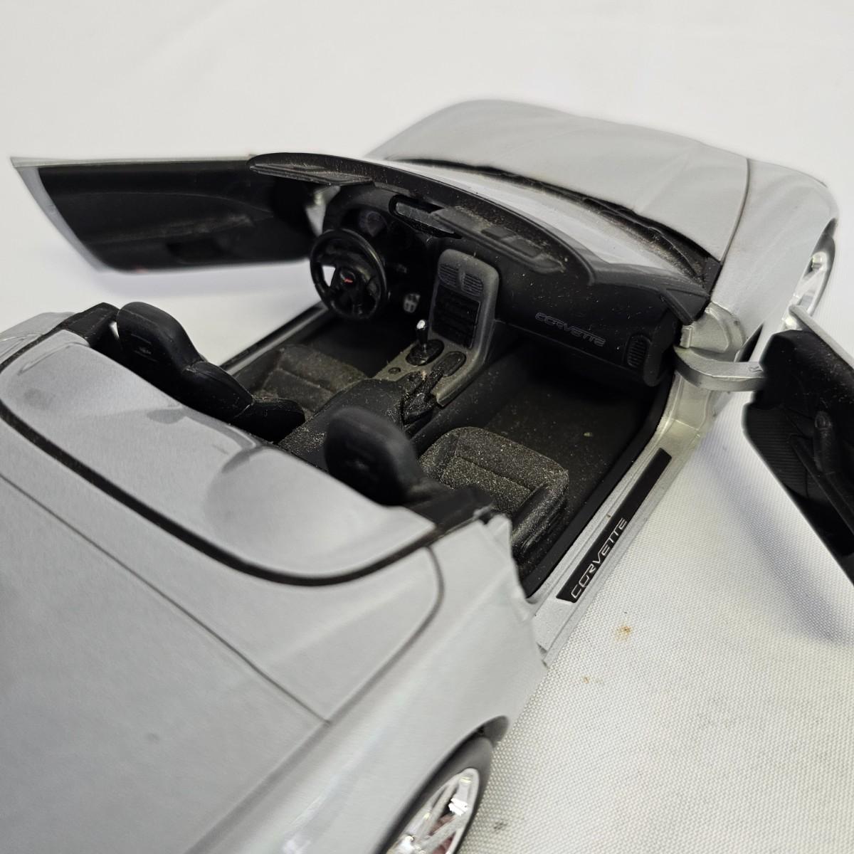 A range of seven metal Corvettes in 1:18 scale. Years include 1953, 1963, 1969, 1984, 1997, 1998, 2003. Cars from Mattel, Exoto, BBurago, others. Opening doors and hoods on all models, some with removable tops as well. One model includes tool stack with simulated tools inside. A replica of the original 1953 model as well as a 1963 Grand Sport. Average size is 5" x 10". Smallest pewter car is 4.5" long. Some wear and tear on finishes, and a couple missing mirrors. See photos for details. Shipping available.