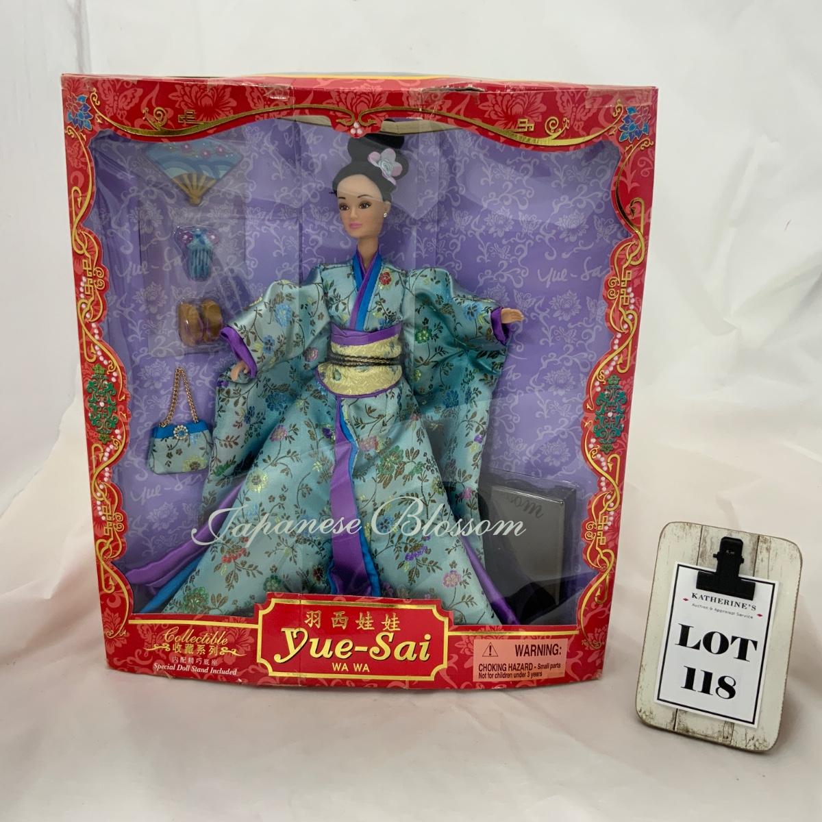 Japanese Blossom Yue-Sai Wa Wa Doll, produced in 2002. Yue-Sai is a Chinese American who, in addition to being a television personality and best-selling author was appointed by UNICEF as an Ambassador for Children. She created these dolls for other Chinese-Americans to connect to - so that they could see themselves on the shelves of stores like all the other girls. Doll is new, in Box - Box does have some damage, pictured. Please see photos for details and condition. !!! Proceeds from this auction will be donated to the NEW COMMUNITY SHELTER in Green Bay, Wisconsin. Please see Sale Description to the Left for more information. !!! ::: Shipping is available on this lot. If you require shipping you must let us know at the close of the auction. We will coordinate with you after the item has been won. Shipping fees will include insurance up to or exceeding the value of all items being mailed. If you have any questions regarding this lot please contact the auctioneer either via this website, by direct email or by phone. PICK UP TIMES and other important information can be found in the TERMS and DESCRIPTION of the auction. Please take a look for pertinent information. Thanks!