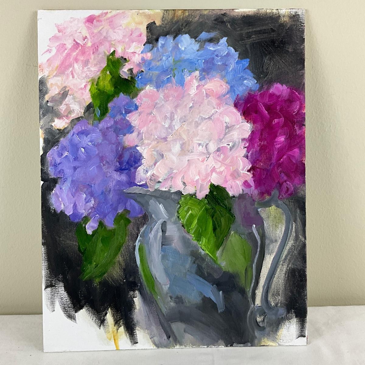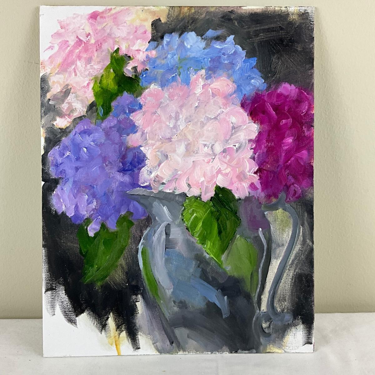 118 Original Oil Painting Pink and Blue Hydrangea Flowers by Kathie Rogers