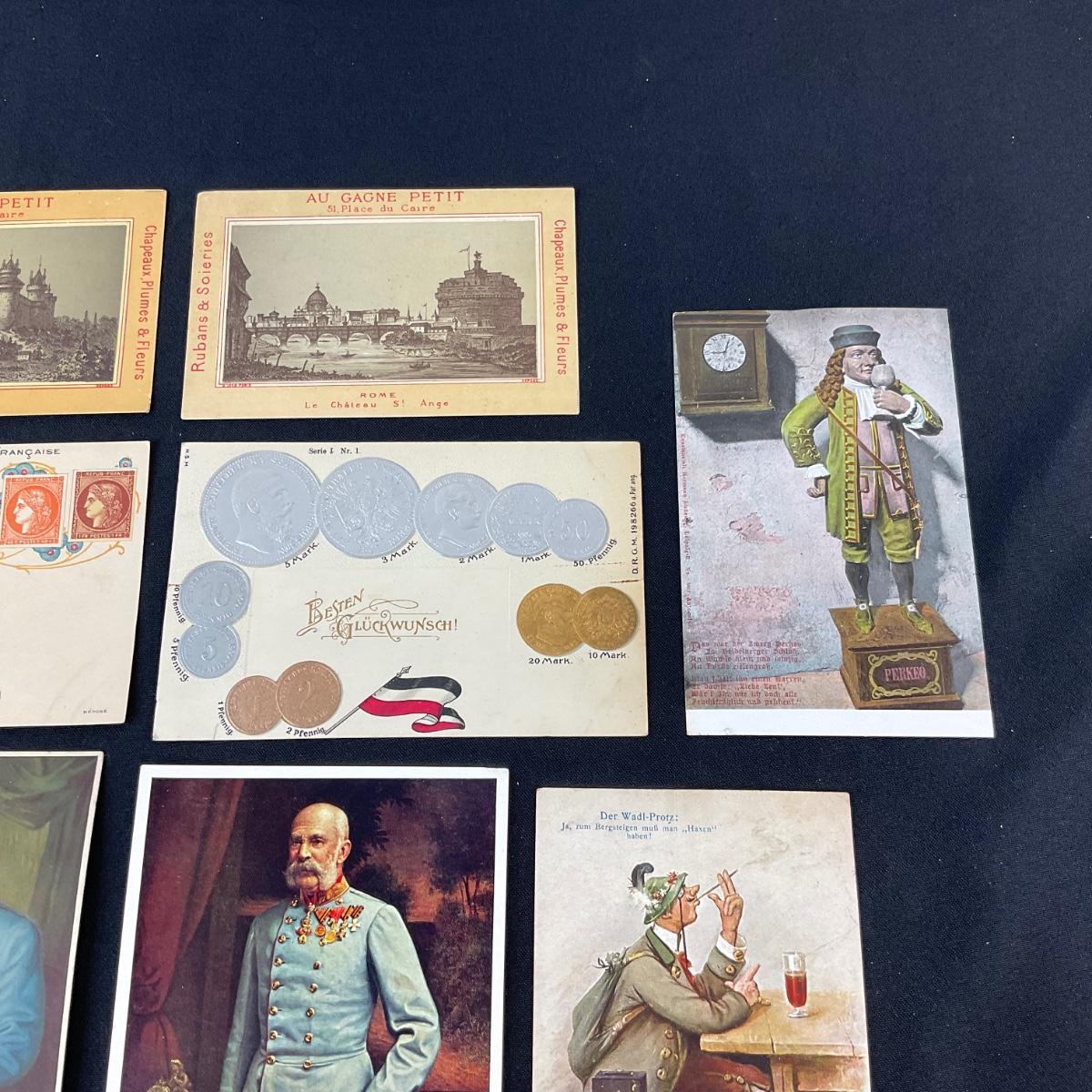 Eight assorted vintage foreign postcards. Please see photos for details and condition. Any condition statement is given as a courtesy to a client, is an opinion, and should not be treated as a statement of fact. Reference to condition written, oral or within a condition report shall not be regarded as a full account of condition and may not include all defects, alterations, or restorations. Absence of a condition report does not imply a lot is flawless or lacking imperfections or damage. Katherine’s Auction & Appraisal Service shall have no responsibility for any error or omission. Returns shall not be accepted on the basis of condition. ::: Shipping is available on this lot. If you require shipping you must let us know at the close of the auction. We will coordinate with you after the item has been won. Shipping fees will include insurance up to or exceeding the value of all items being mailed. If you have any questions regarding this lot please contact the auctioneer either via this website, by direct email or by phone. PICK UP TIMES and other important information can be found in the TERMS and DESCRIPTION of the auction. Please take a look for pertinent information. Thanks!