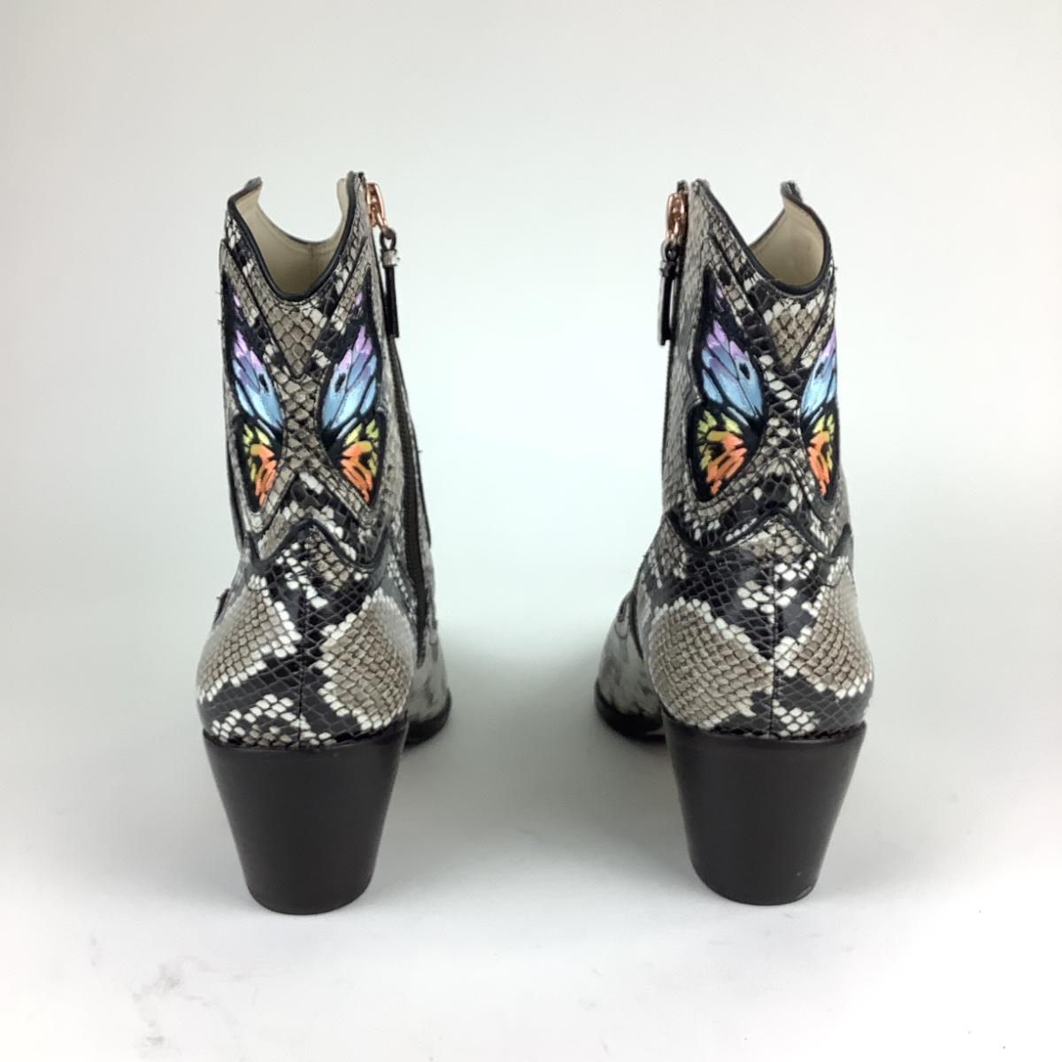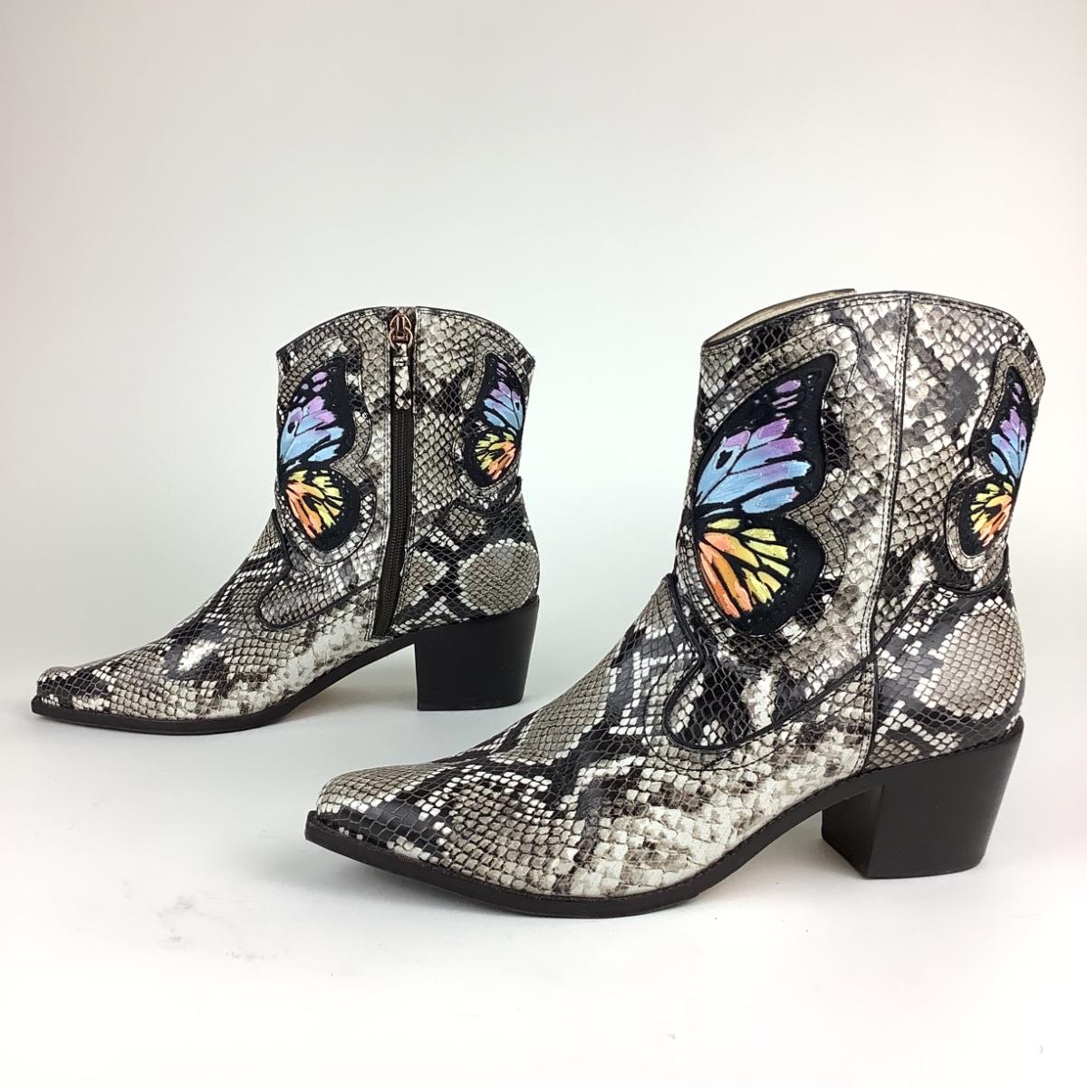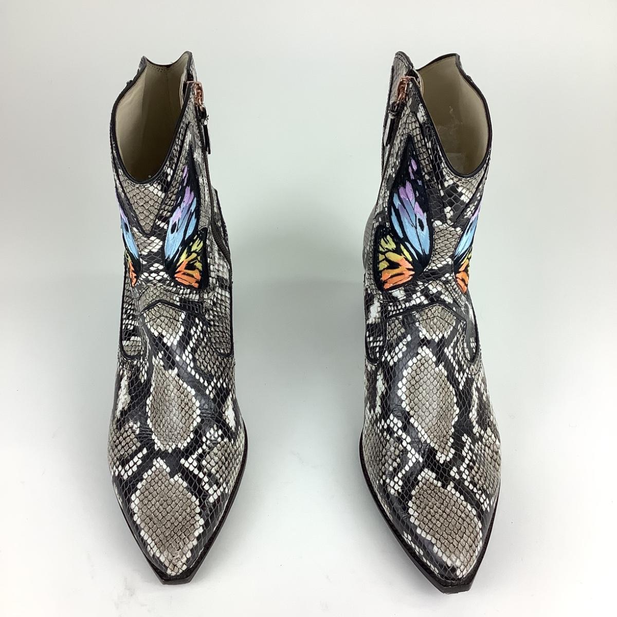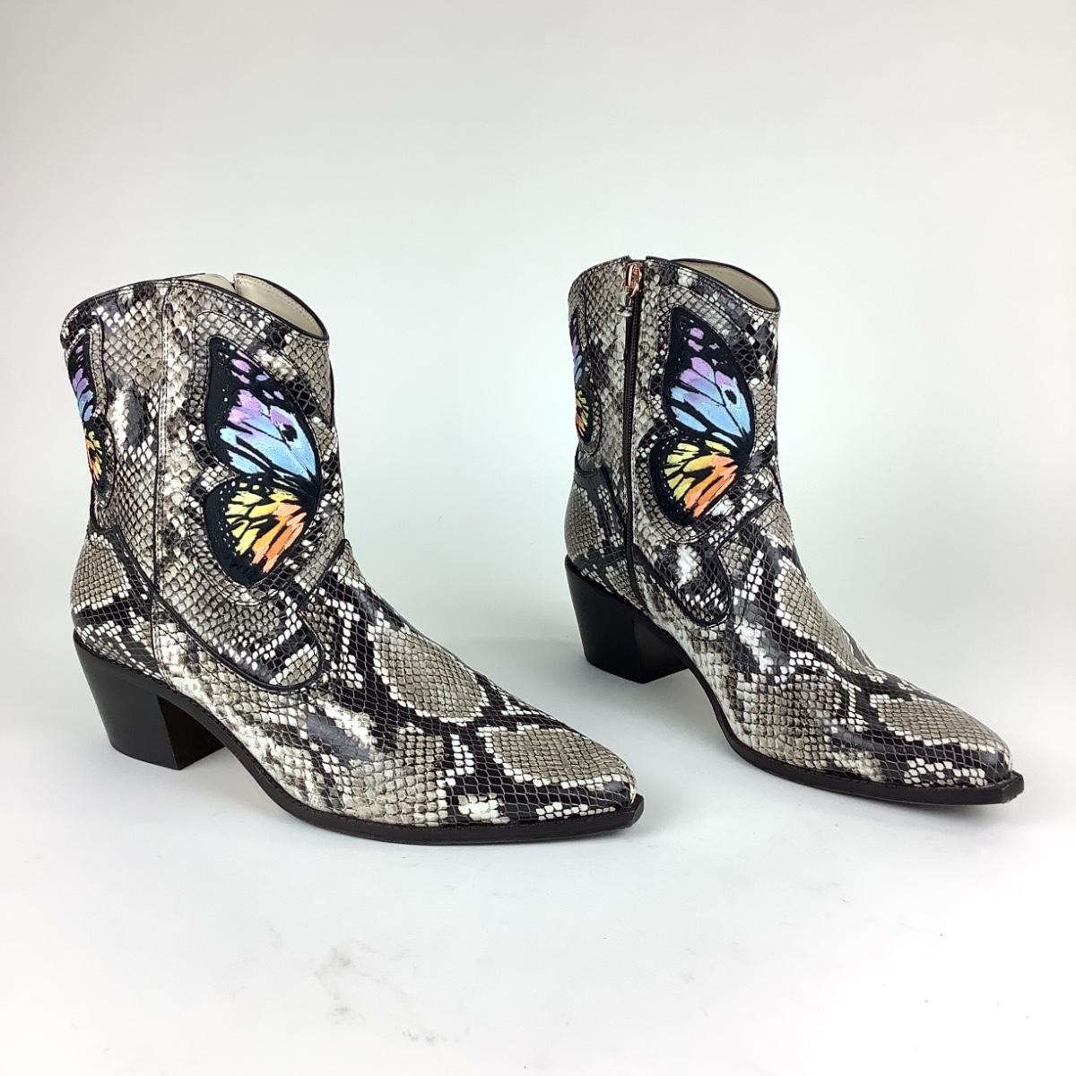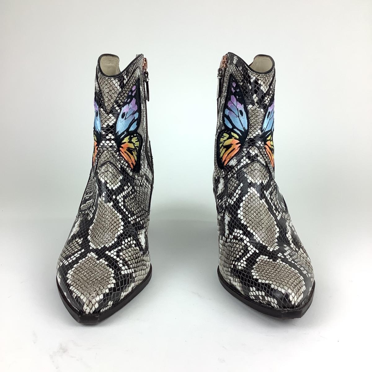 Gently worn Sophia Webster snake print leather with butterfly on the front ankle western style boots, made in Brazil.