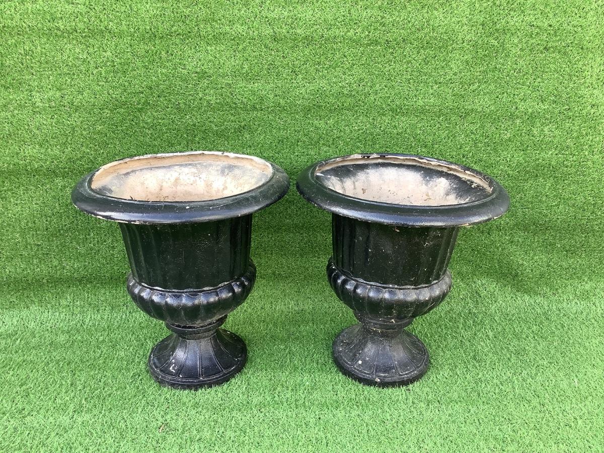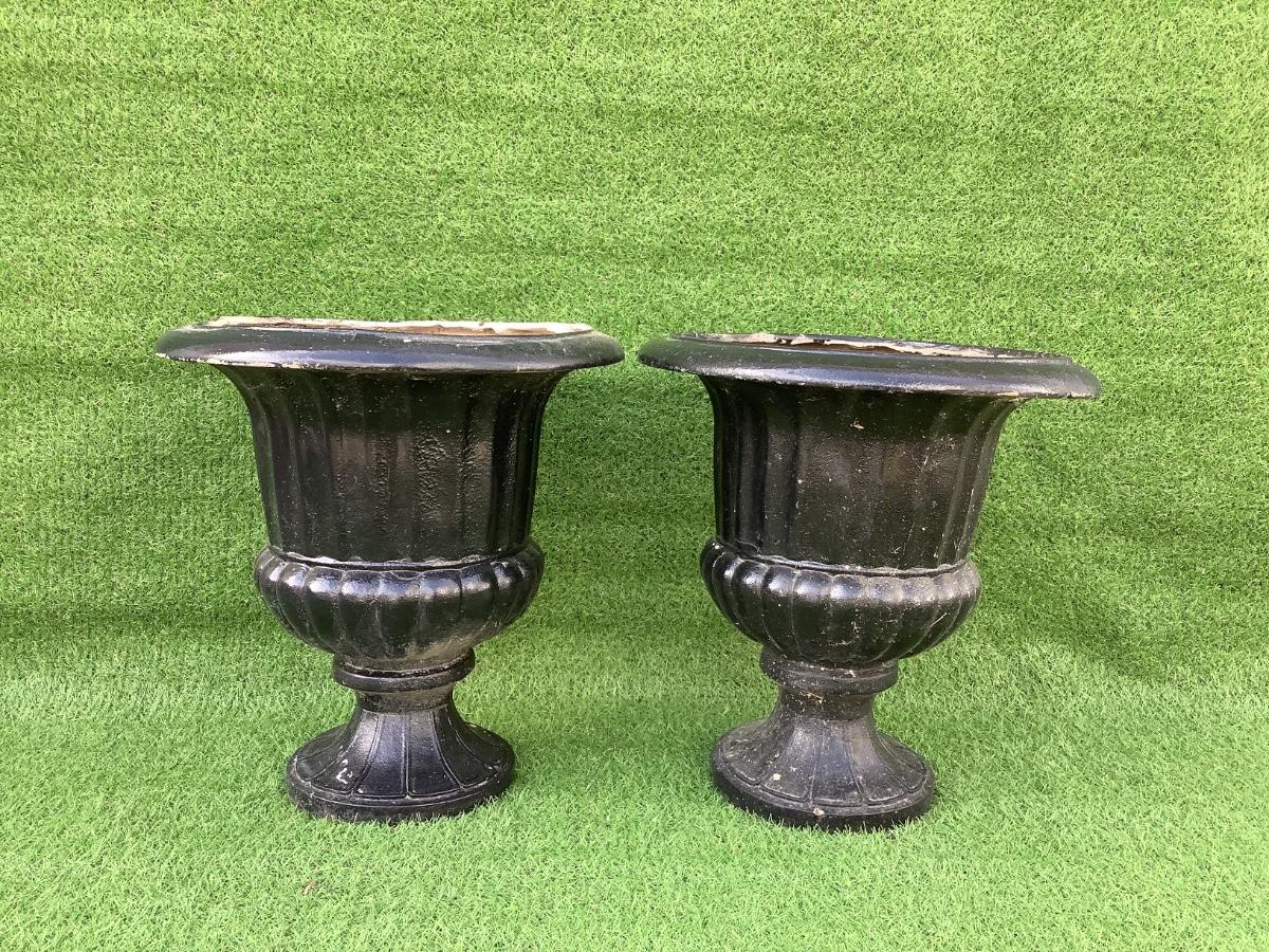 118 Pair of Black Fiberglass Pedestal Urn Planters