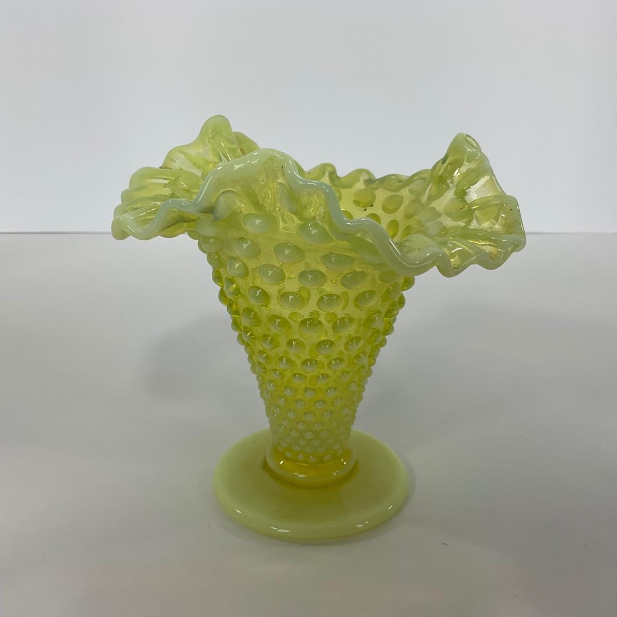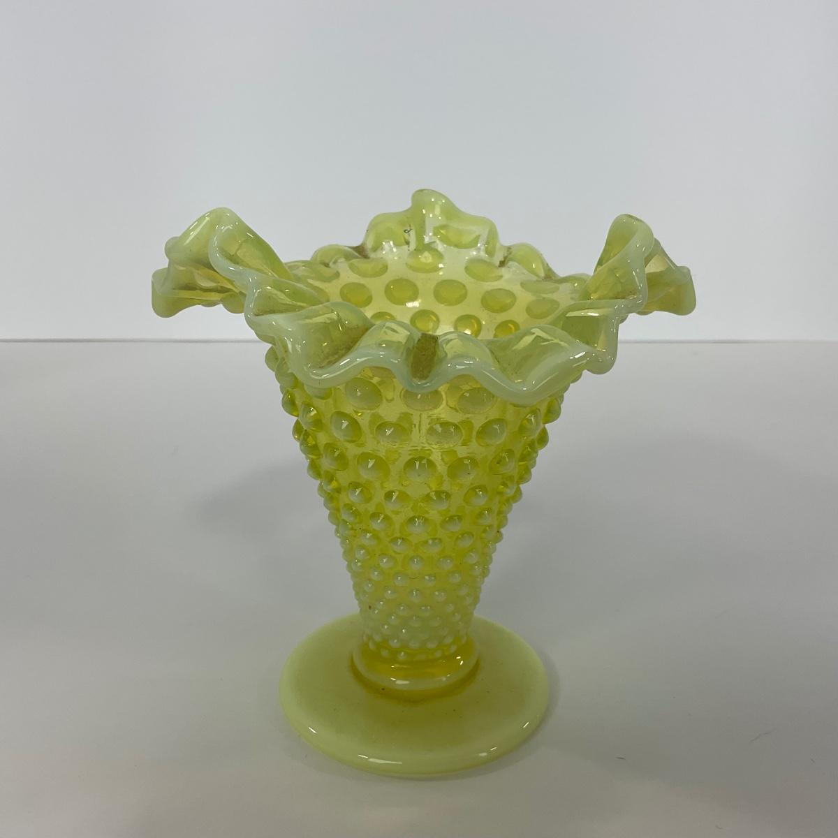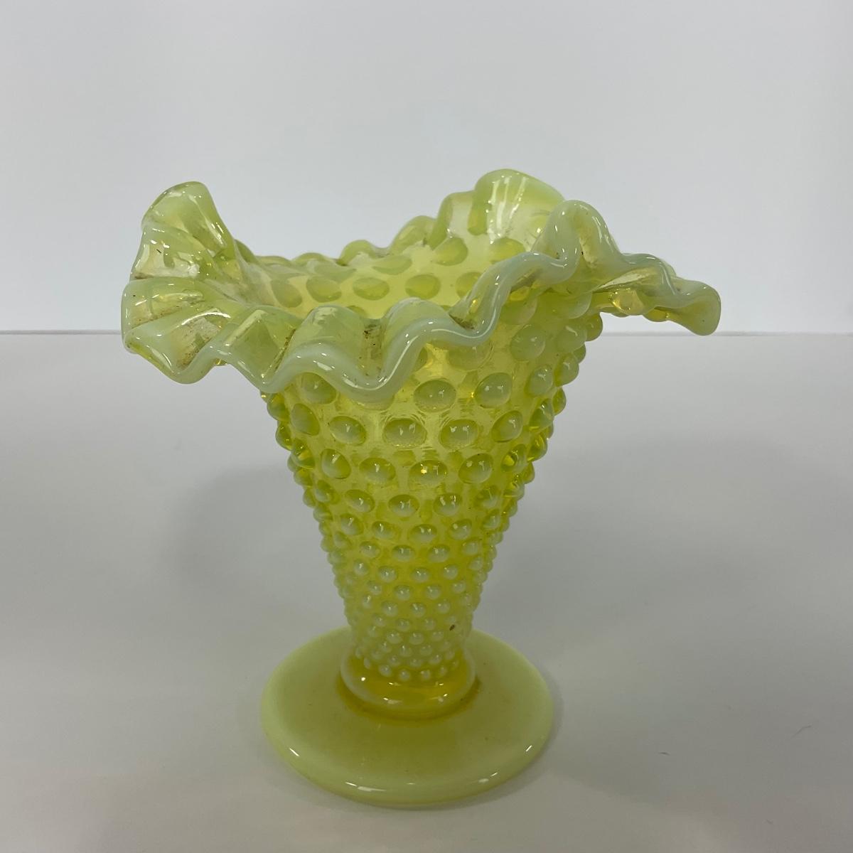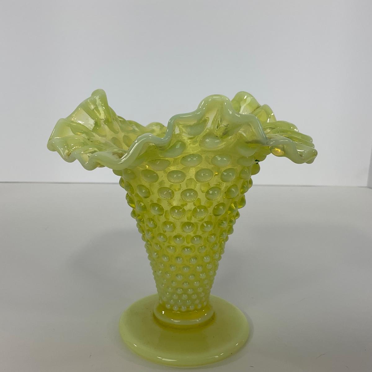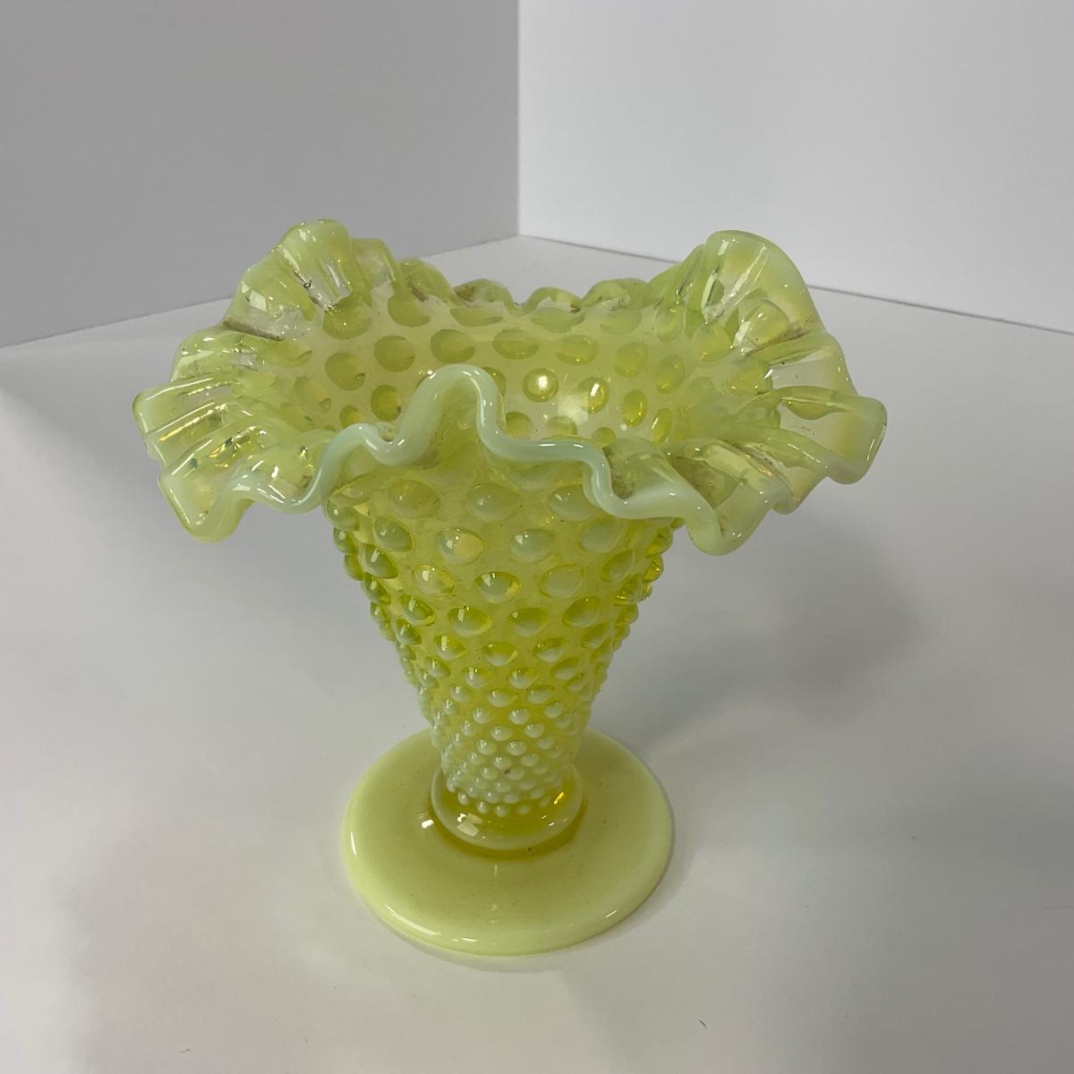 -118- URANIUM | Fenton Vaseline Glass Opalescent Hobnail Vase