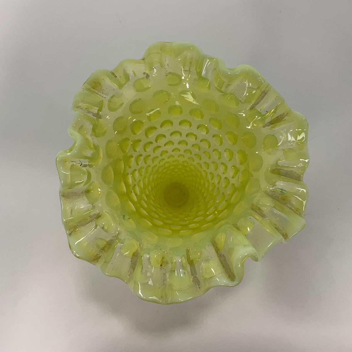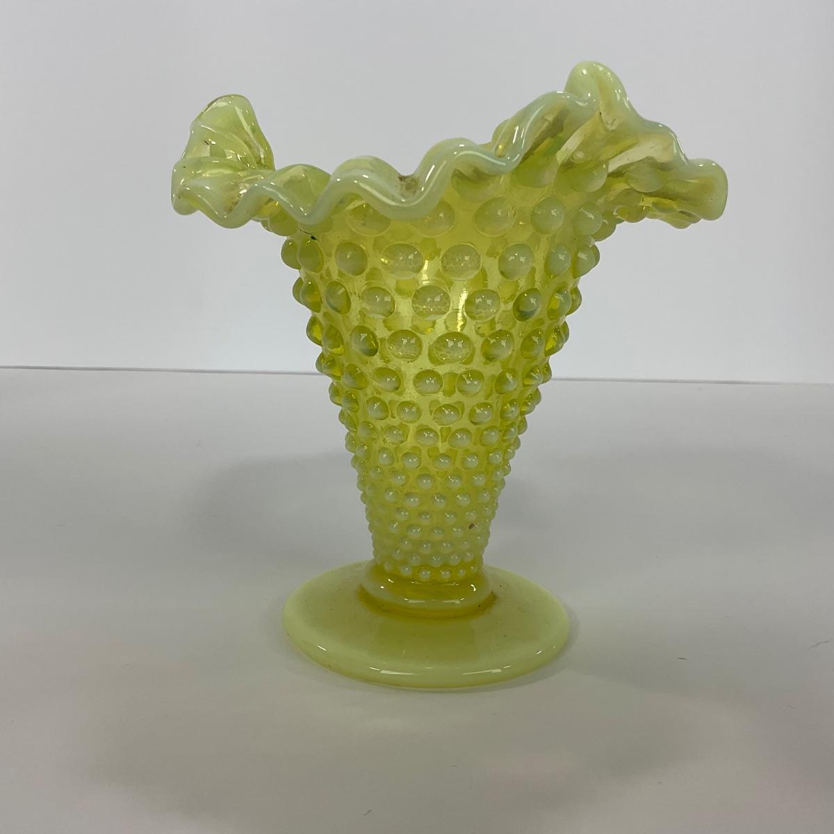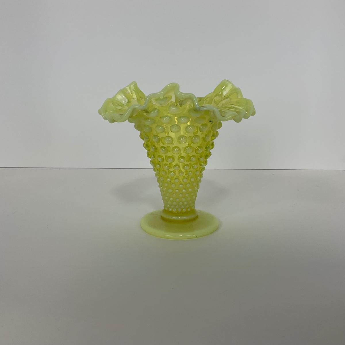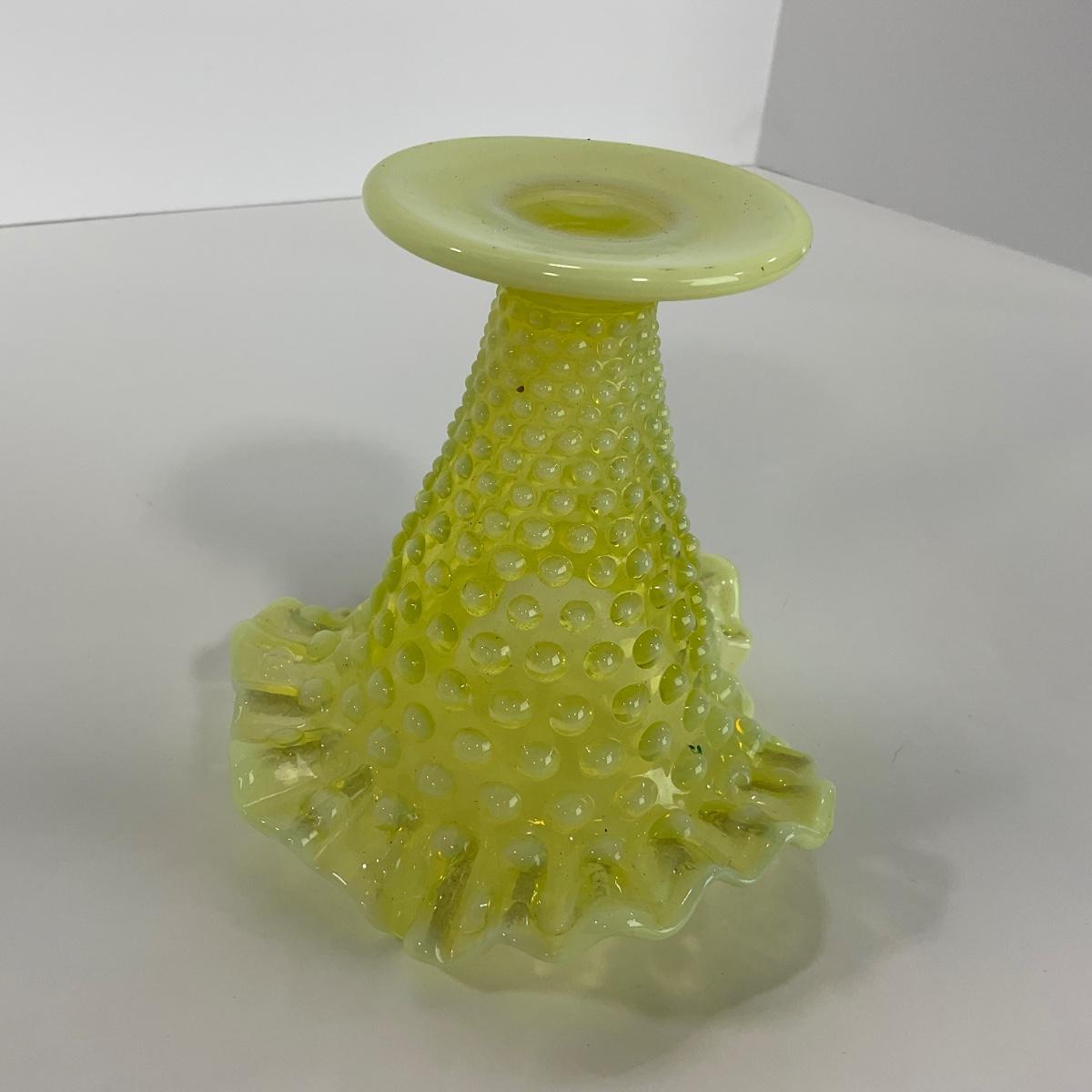 -118- URANIUM | Fenton Vaseline Glass Opalescent Hobnail Vase