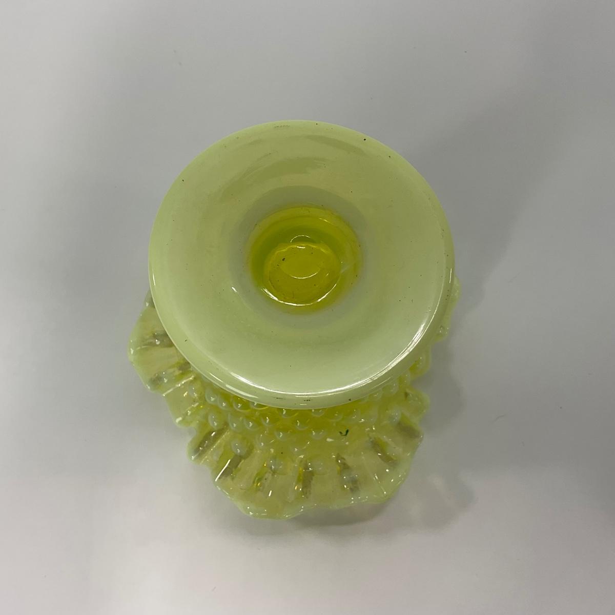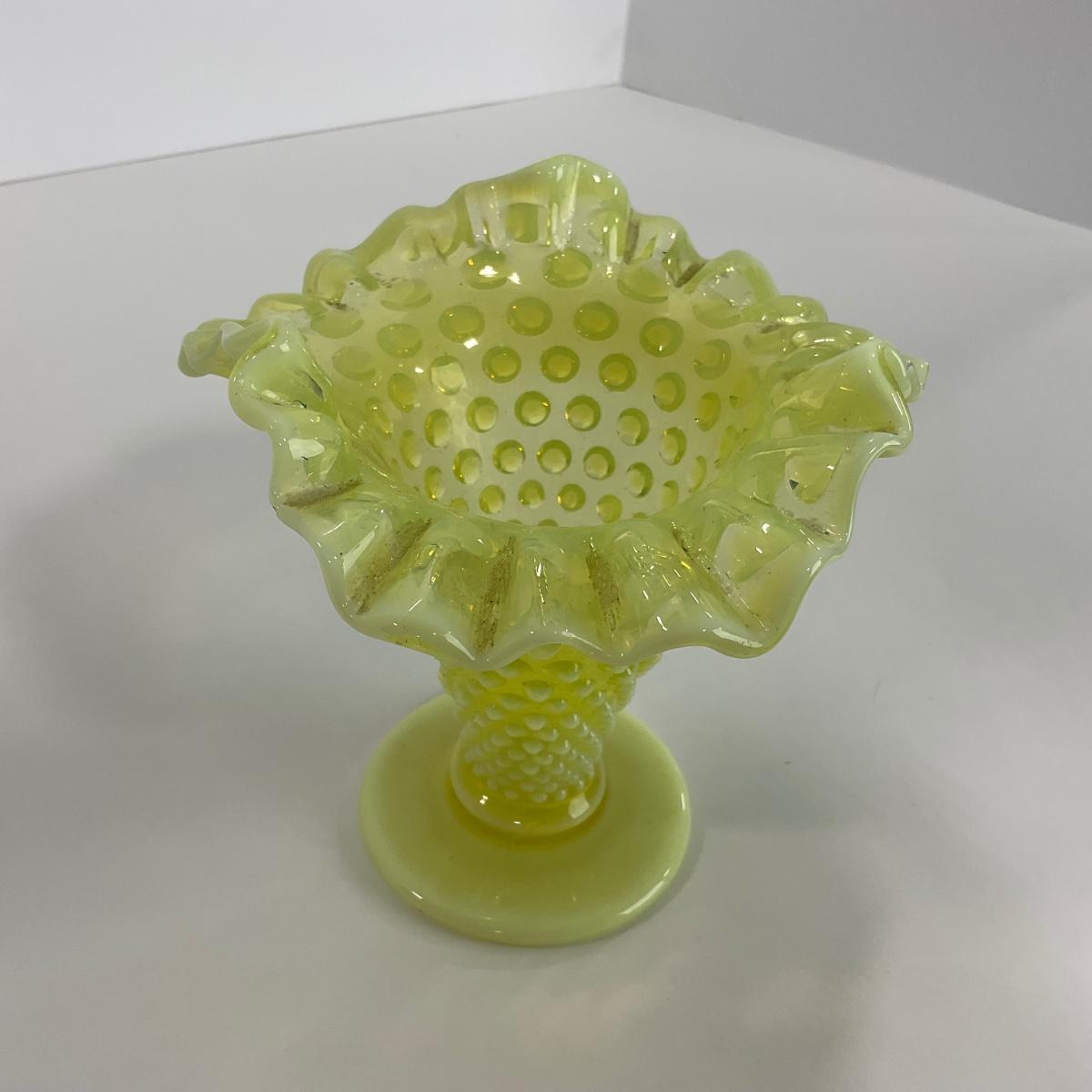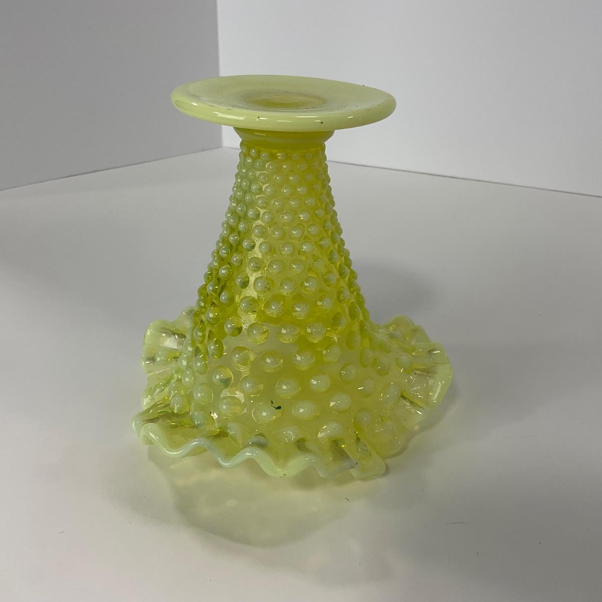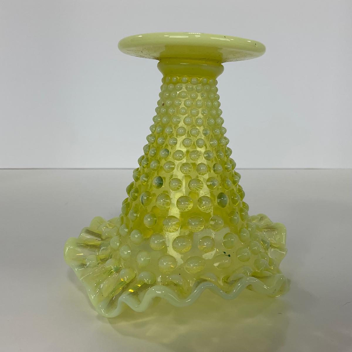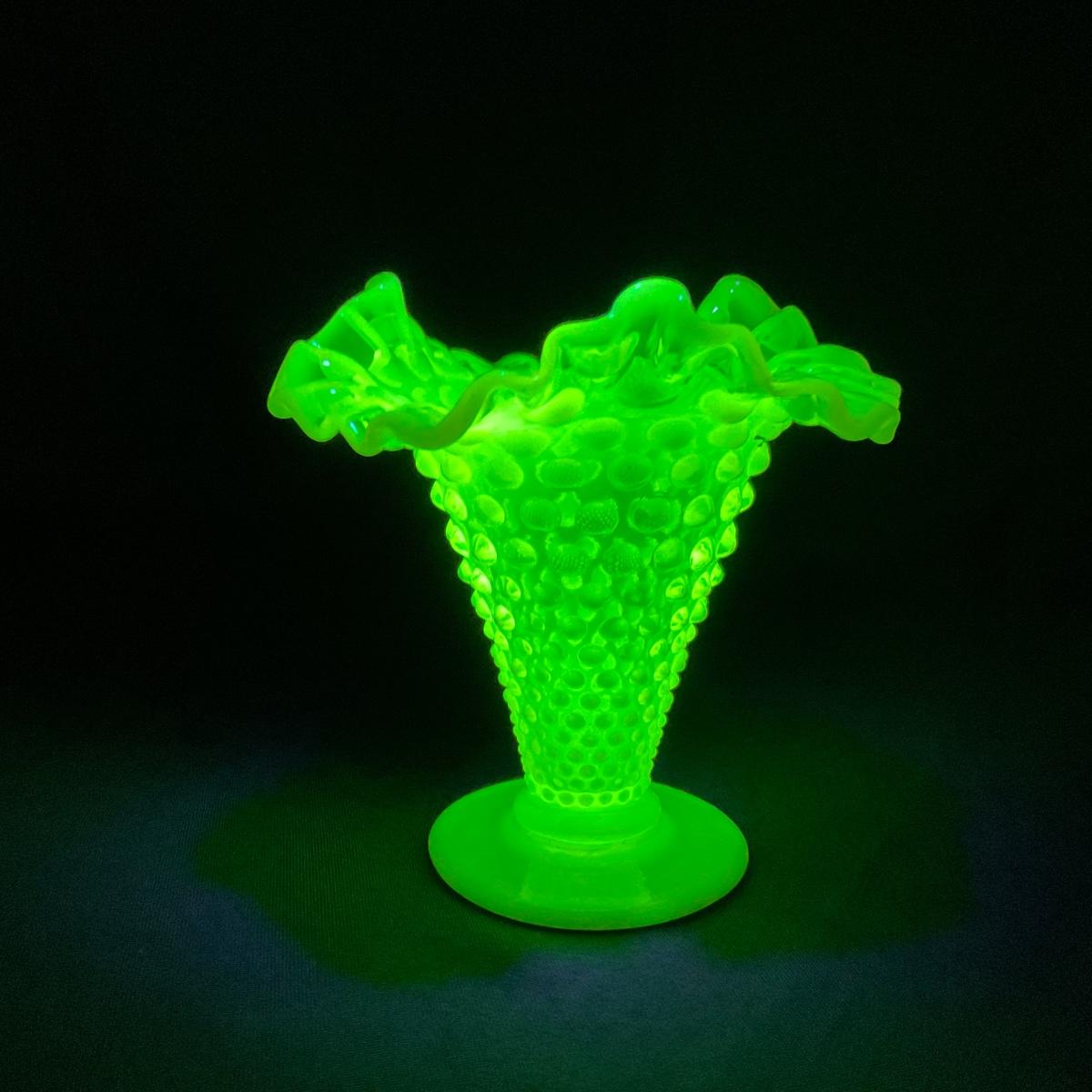 -118- URANIUM | Fenton Vaseline Glass Opalescent Hobnail Vase