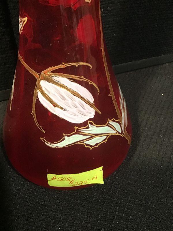 #118 - Vintage Red Hand painted "Genie" Vase