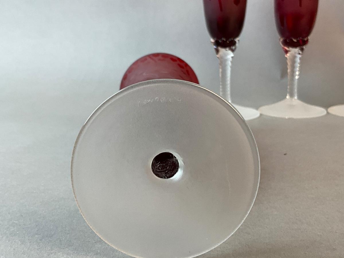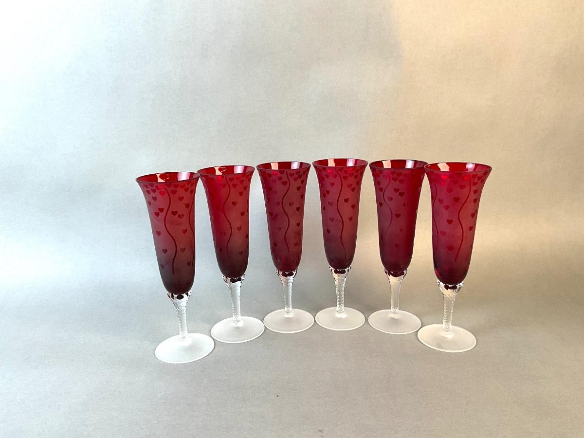 1180 Set of 6 Heart Etched Champagne Flutes signed Wylie Ponder