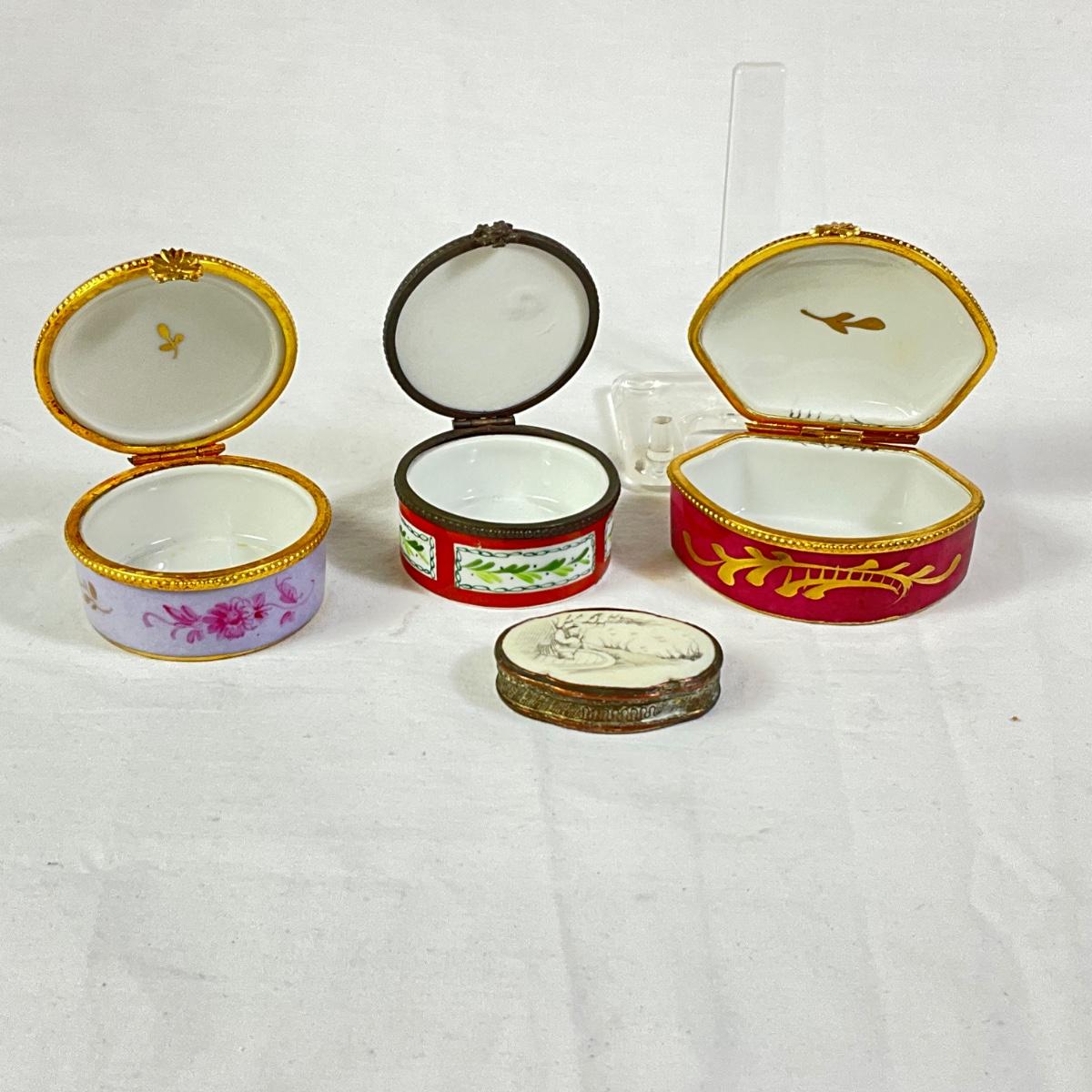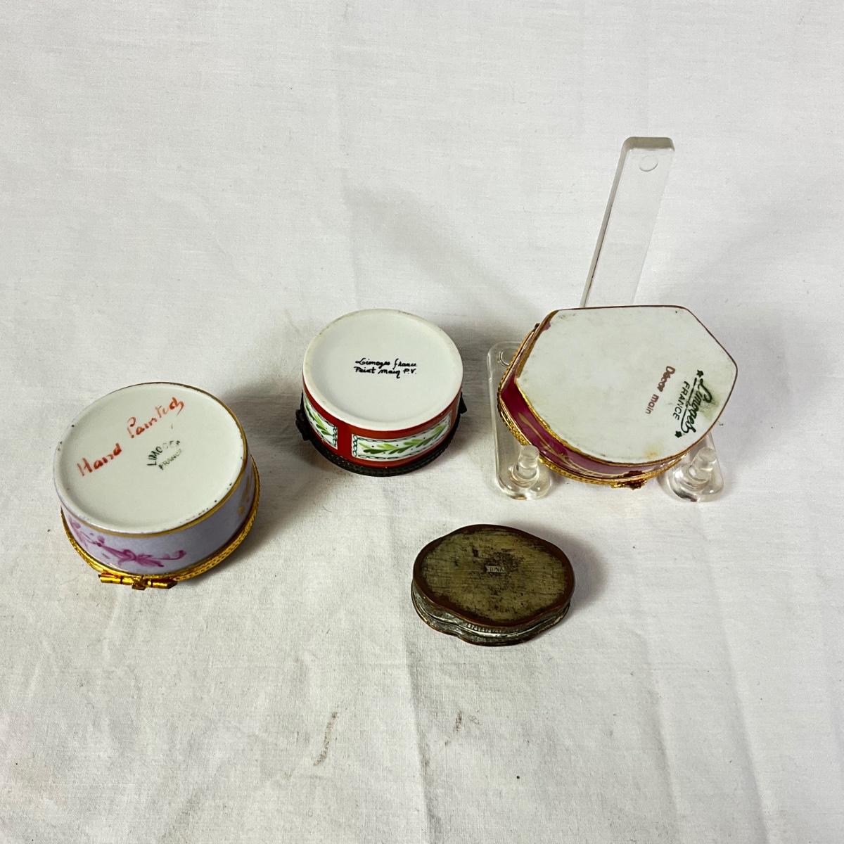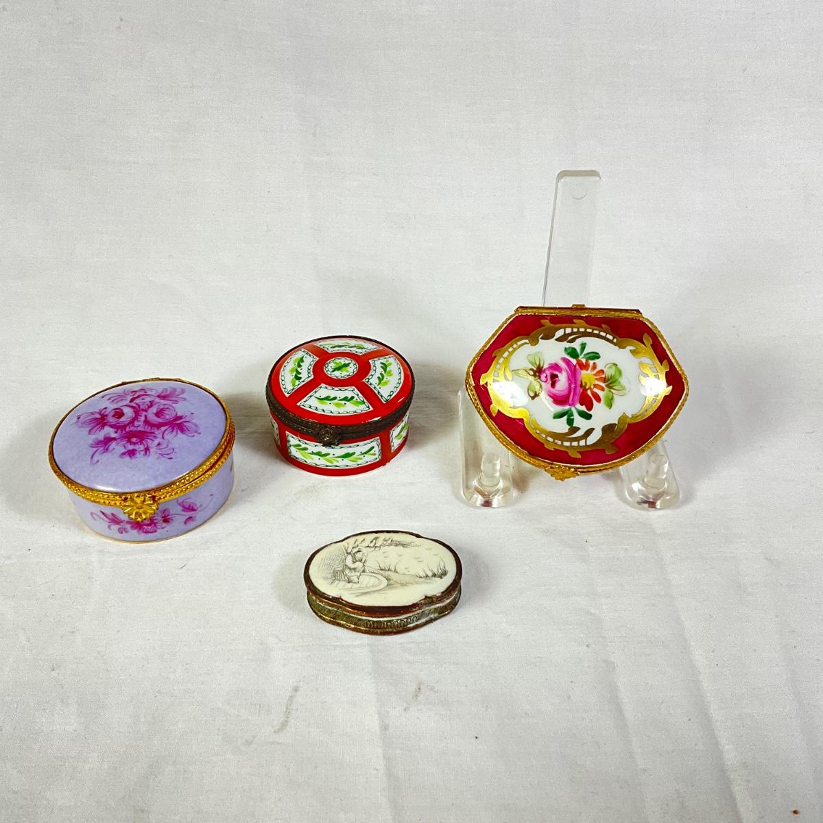 1180 Three Limoges Hinged Porcelain Boxes, One Chinese Box