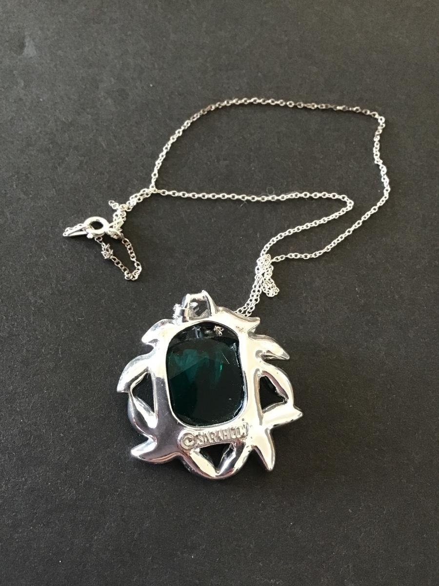Vintage, Sarah Coventry, Silvertone, aqua, marine, green rhinestone necklace