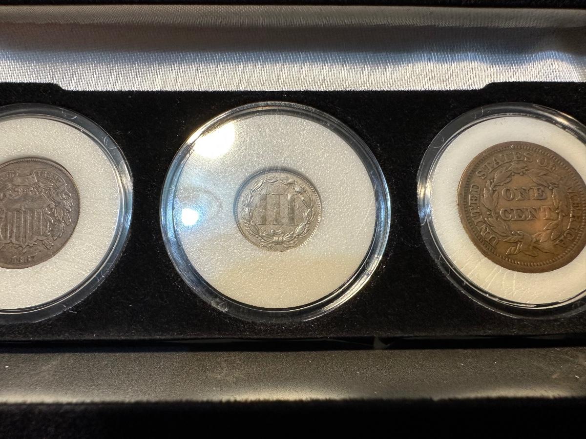 1867 2 CENT, 1865 3 CENT AND 1854 LARGE CENT PIECES