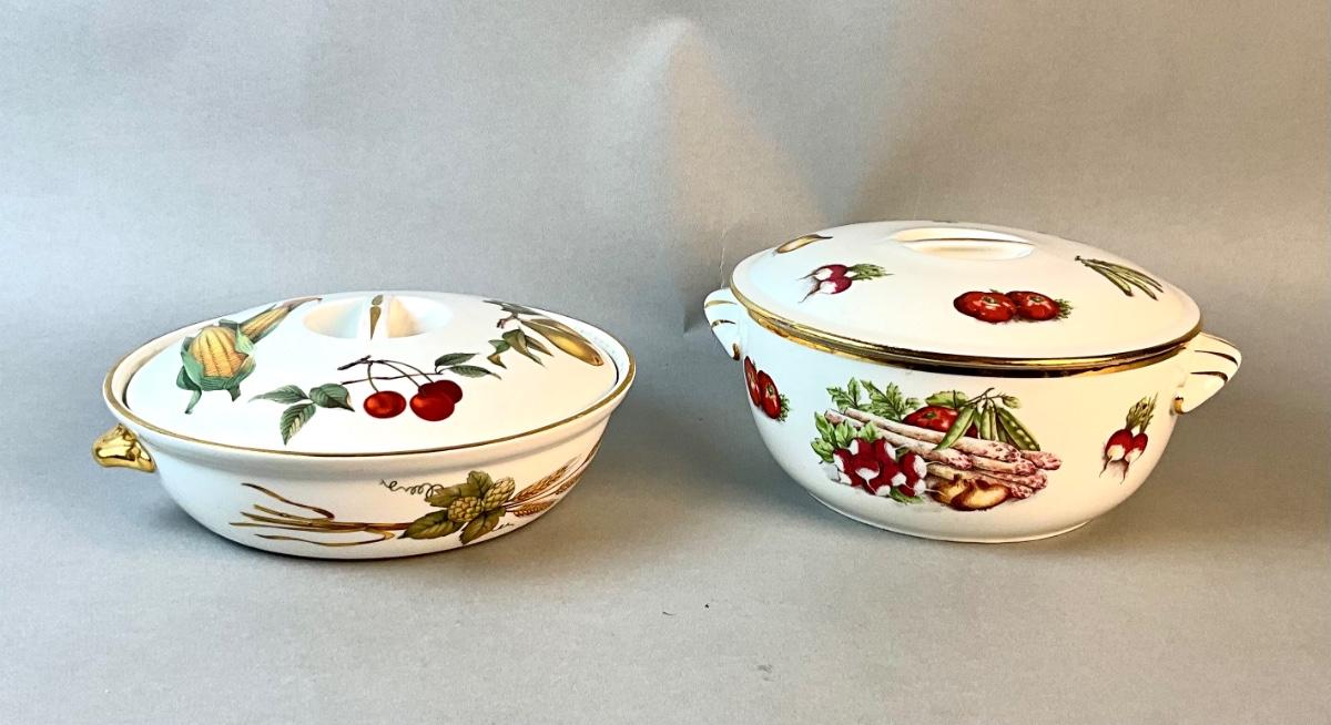 1182 Set of 2 Royal Worcester and Pillivuyt Covered Vegetable Dishes