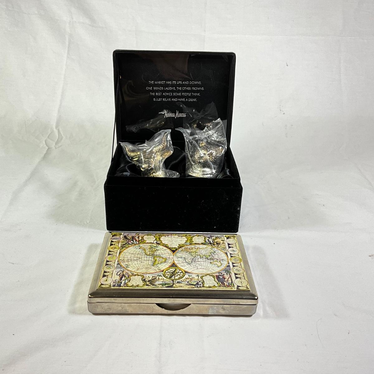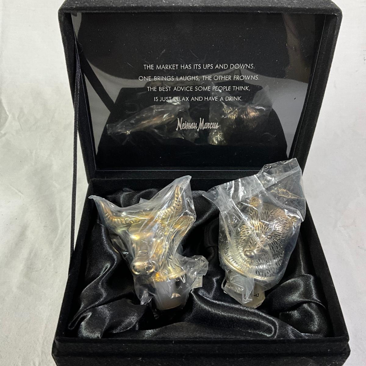 1183 New Neiman Marcus Bull & Bear Bottle Stopper with World Notepad Case