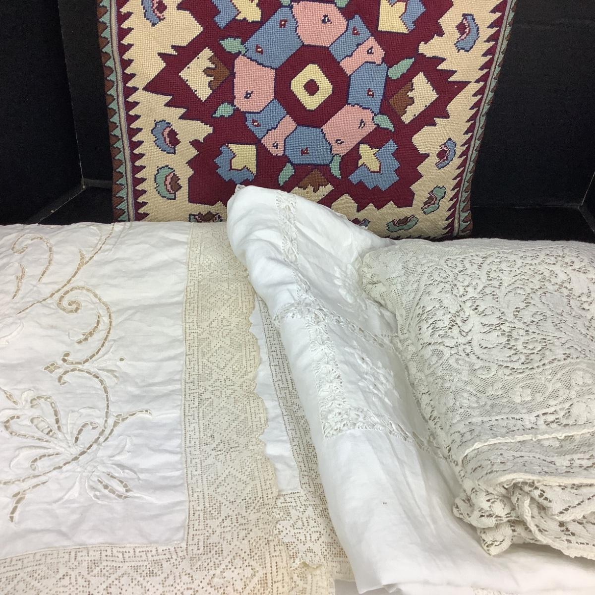 1530 Antique Linen & Lace Lot & Needlepoint Pillow