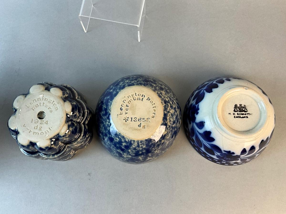 1186 Bennington Pottery with Signed Vase and Flow Blue English Bowl