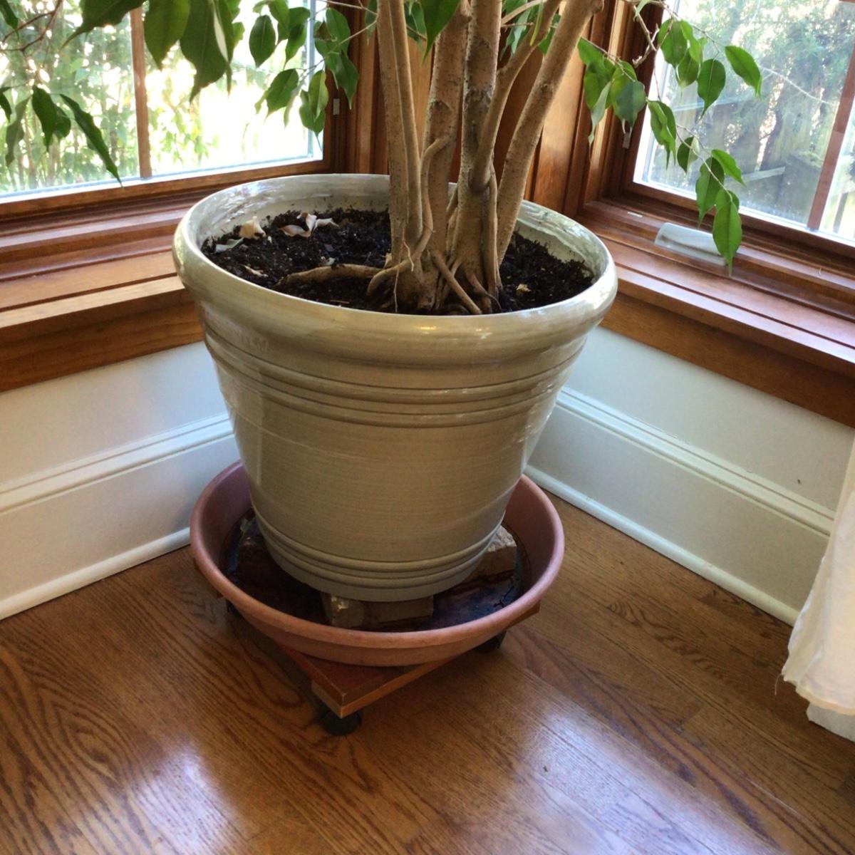Tree is in pot and on wheels, it measures 64” tall and 3’ wide.