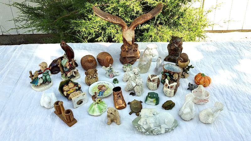 Erich Stauffer 2 springtime, Josep Original green May girl, small statues, Hummel reproduction, ear chip