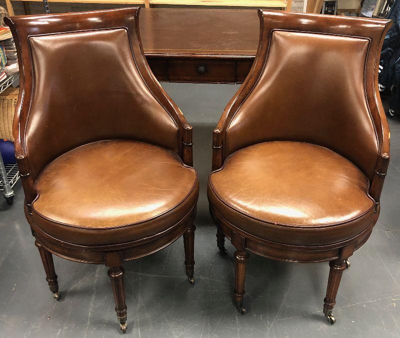 #119 2 Drexel Barrell / Game Chairs with Leather covers