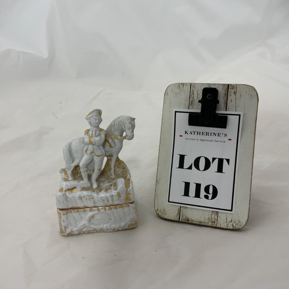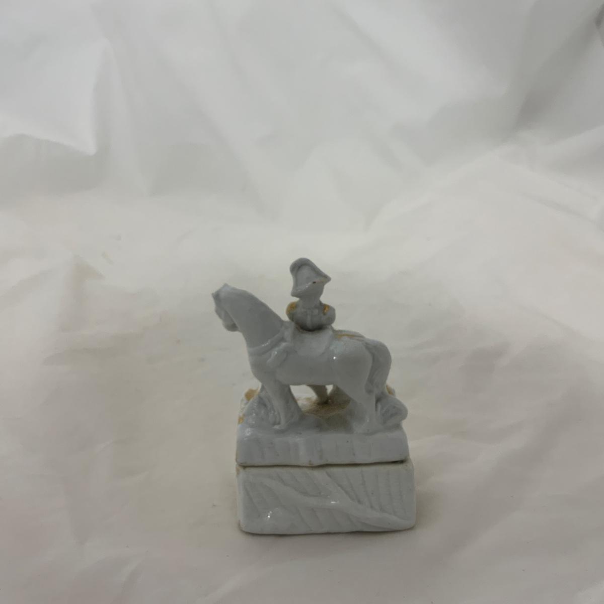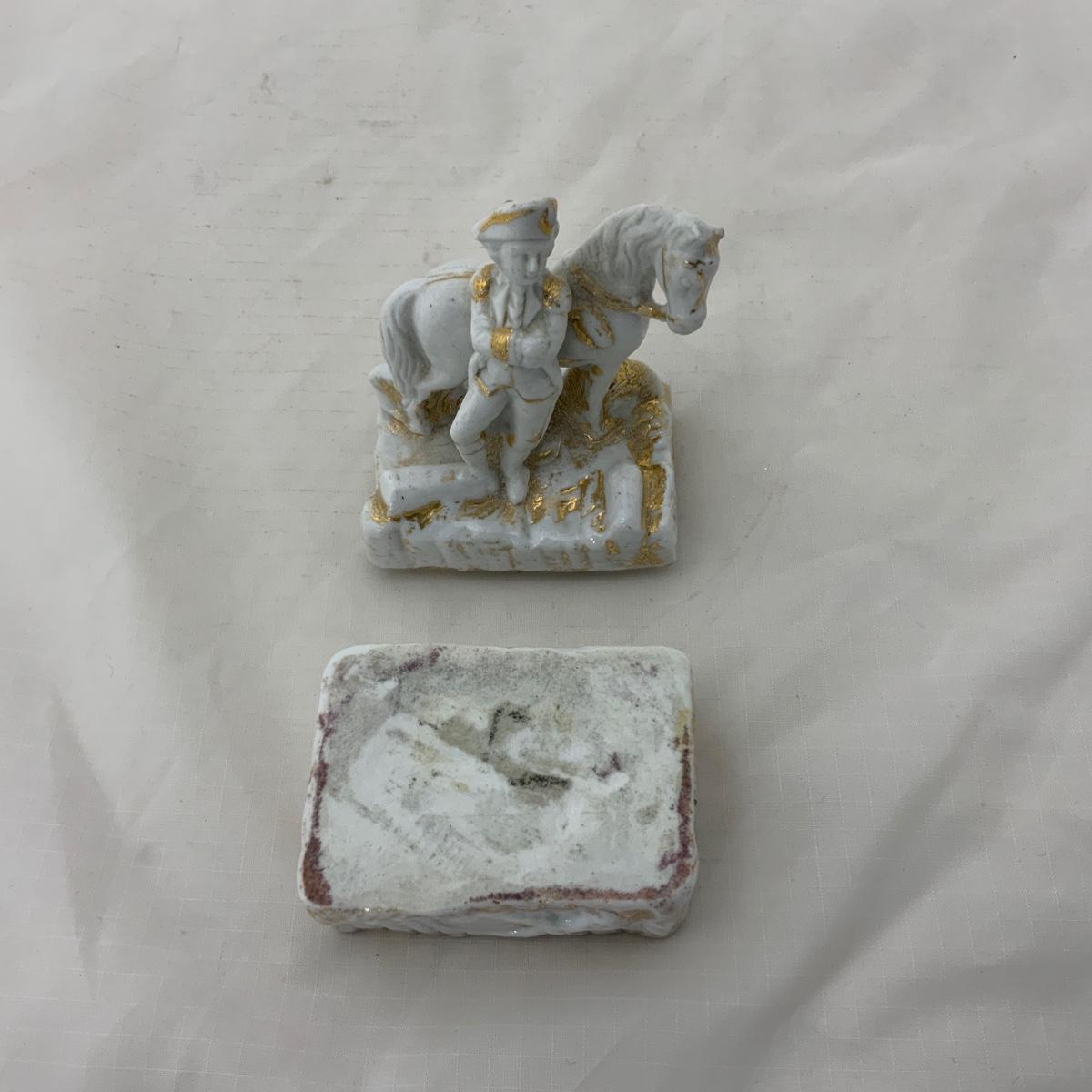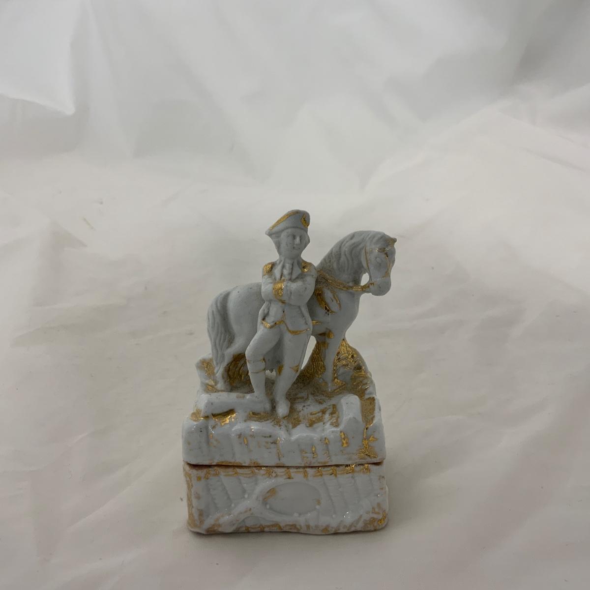 Unique and Exceptional George Washington with his horse, atop a trinket dish, circa 1860. Piece is in exceptional condition. Some gold loss over the years. Please see photos for details and condition. ::: Shipping is available on this lot. If you require shipping you must let us know at the close of the auction. We will coordinate with you after the item has been won. Shipping fees will include insurance up to or exceeding the value of all items being mailed. If you have any questions regarding this lot please contact the auctioneer either via this website, by direct email or by phone. PICK UP TIMES and other important information can be found in the TERMS and DESCRIPTION of the auction. Please take a look for pertinent information. Thanks!