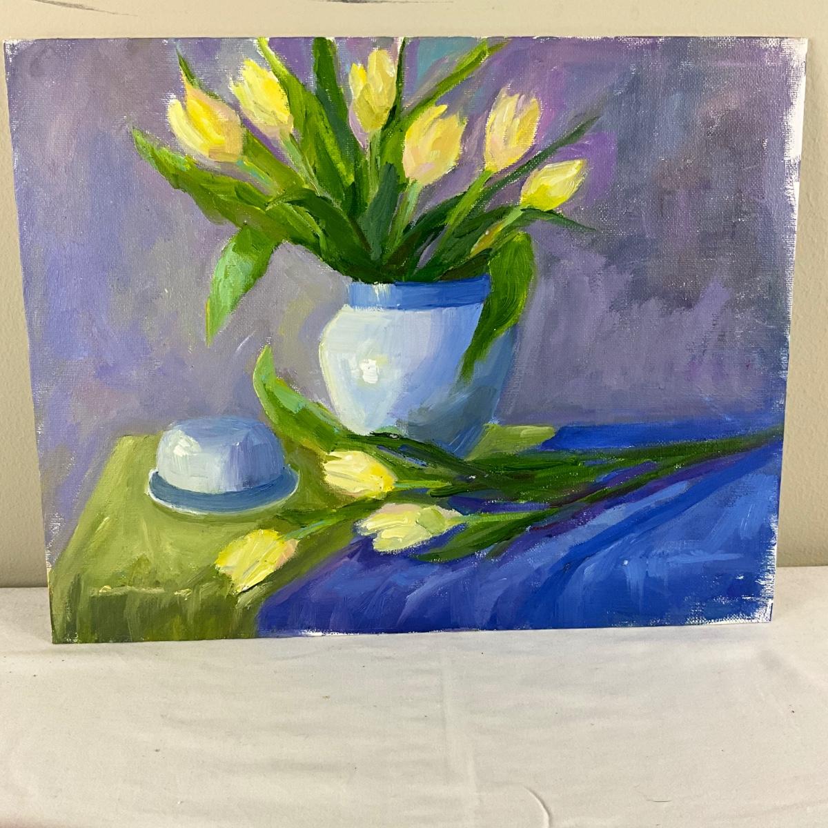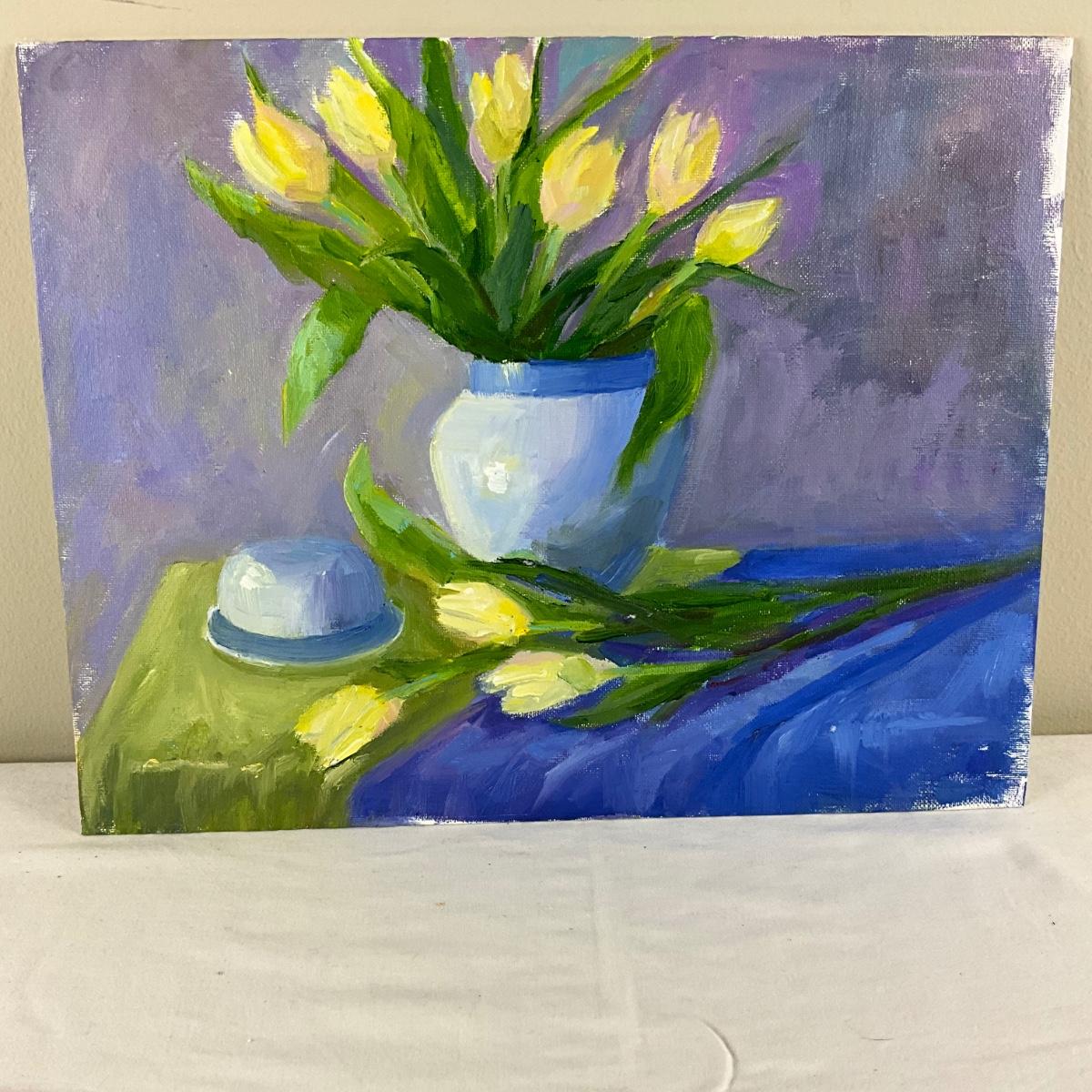 119 Original Oil Painting Still Life of Yellow Tulips by Kathie Rogers