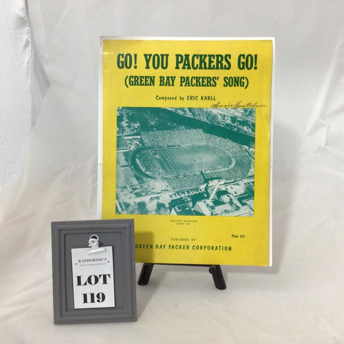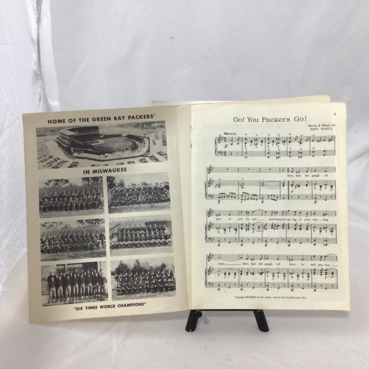 Go! You Packers Go! By Eric Karl sheet music 9 inches by 12 inches. Please see photos for details and condition. ::: Shipping is available on this lot. If you require shipping you must let us know at the close of the auction. We will coordinate with you after the item has been won. Shipping fees will include insurance up to or exceeding the value of all items being mailed. If you have any questions regarding this lot please contact the auctioneer either via this website, by direct email or by phone. PICK UP TIMES and other important information can be found in the TERMS and DESCRIPTION of the auction. Please take a look for pertinent information. Thanks!